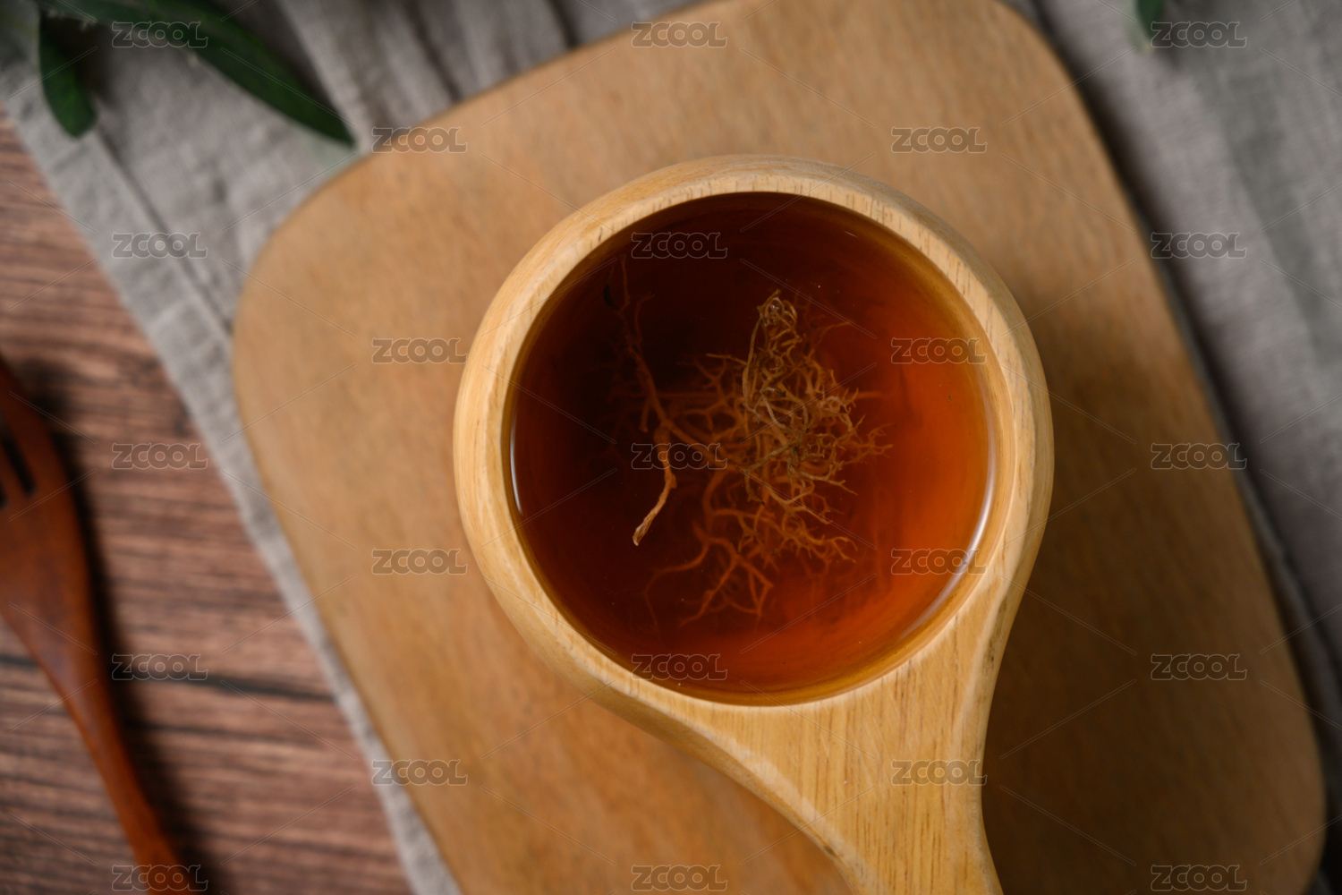 桌面上的杯子里的美味可口的桂花乌龙茶