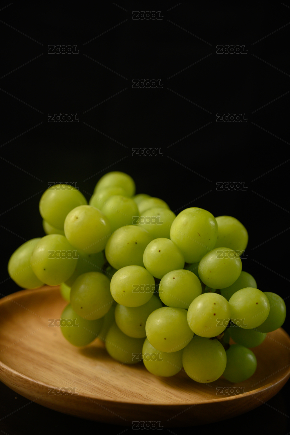 桌面上的盘子里的美味可口的青提子