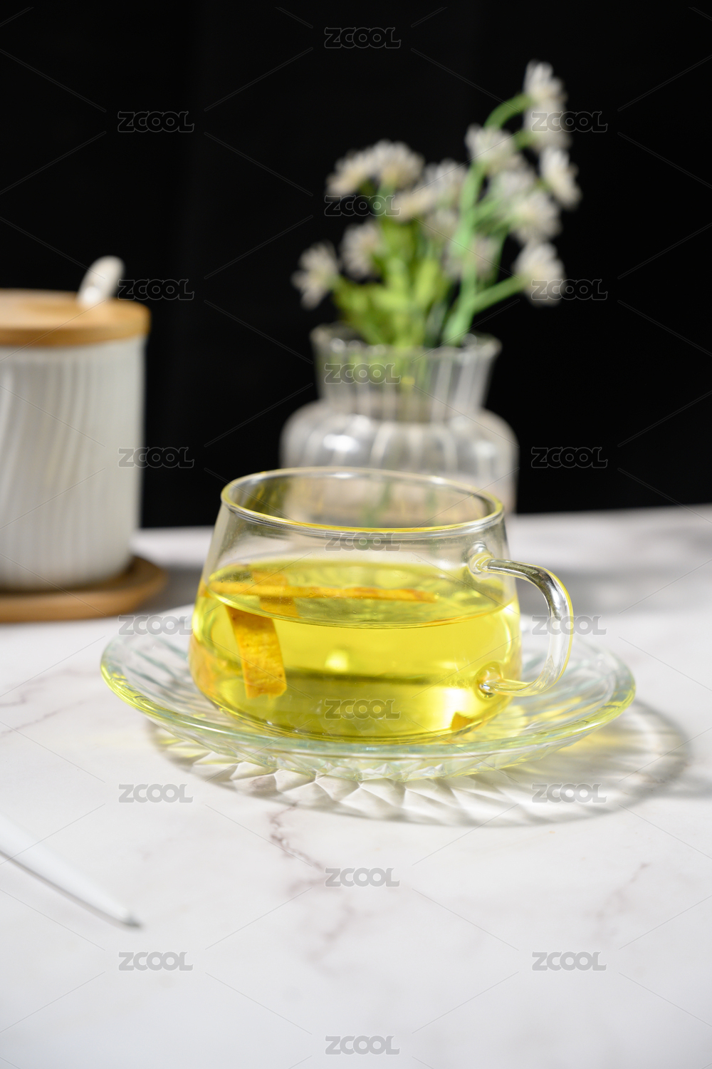 桌面上的杯子里的甘甜可口的槐花茶