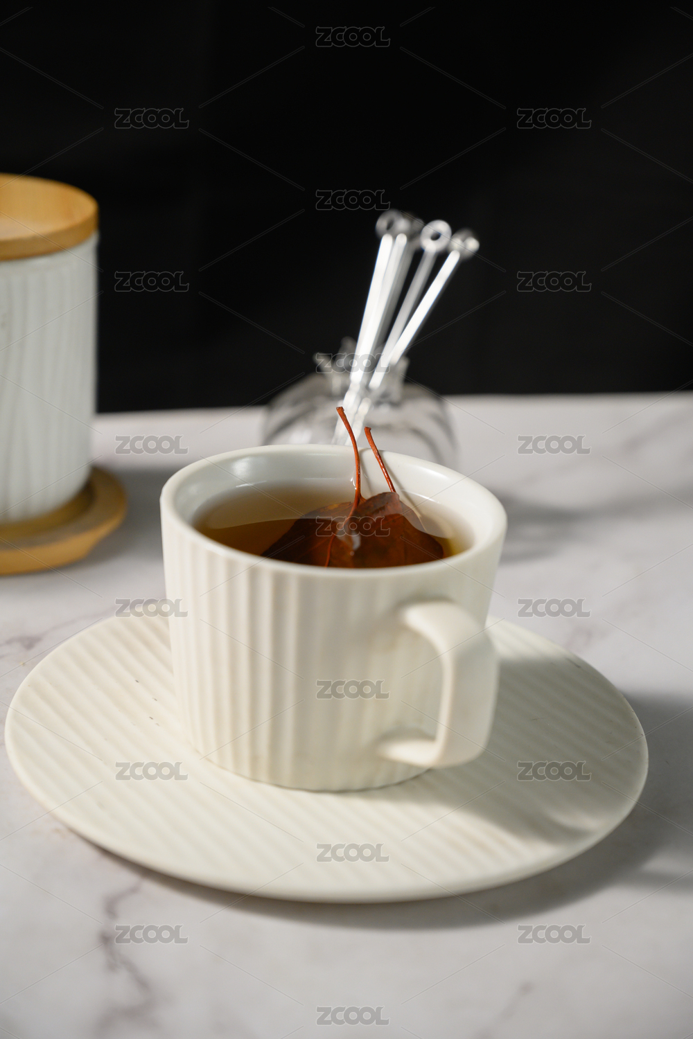 桌面上的杯子里的美味可口的牛蒡茶