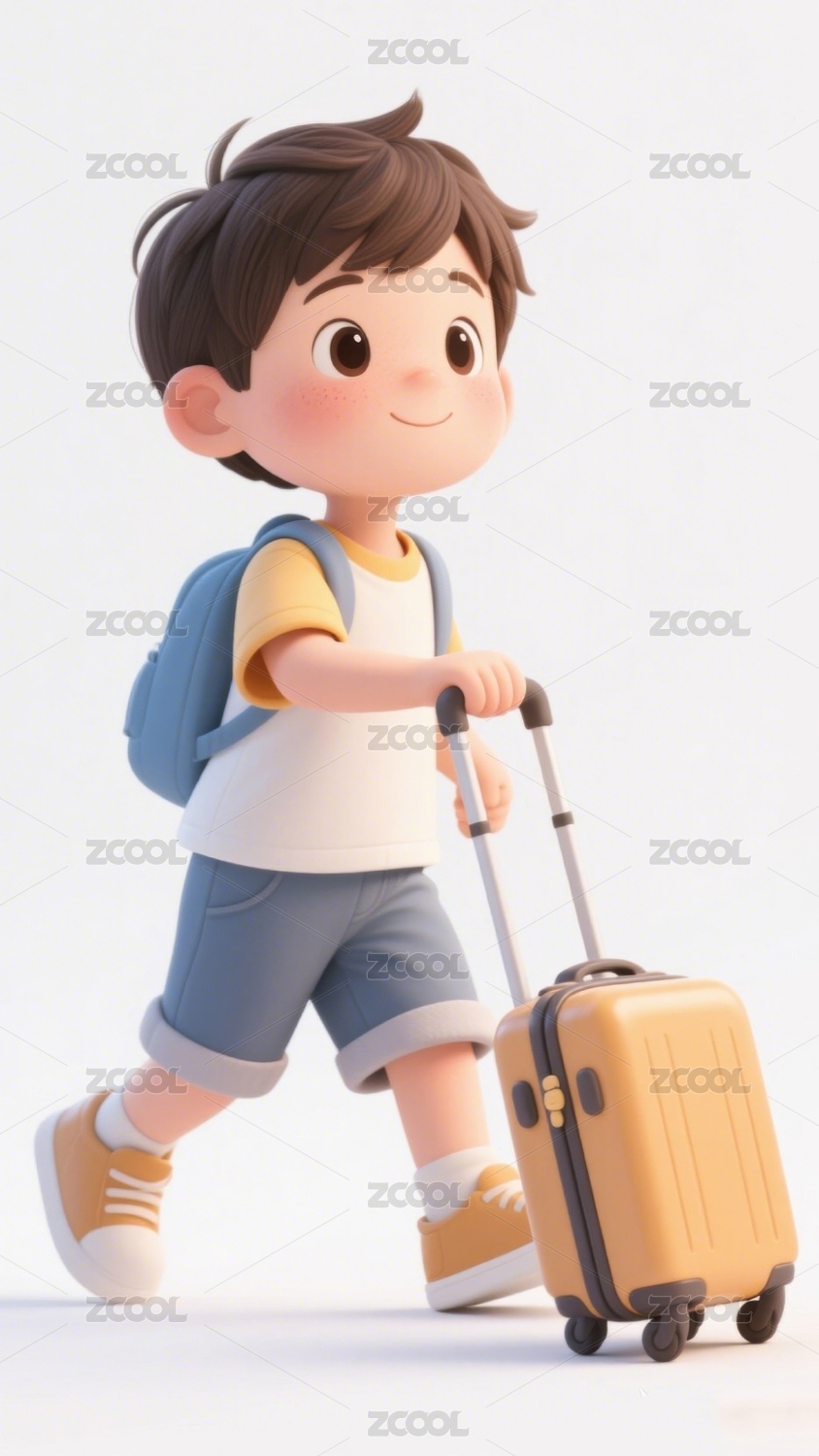 卡通男孩拉着行李箱行走