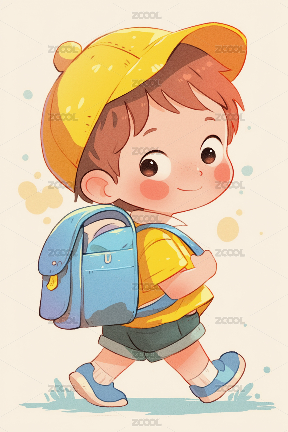 可爱的背着书包上学的男孩