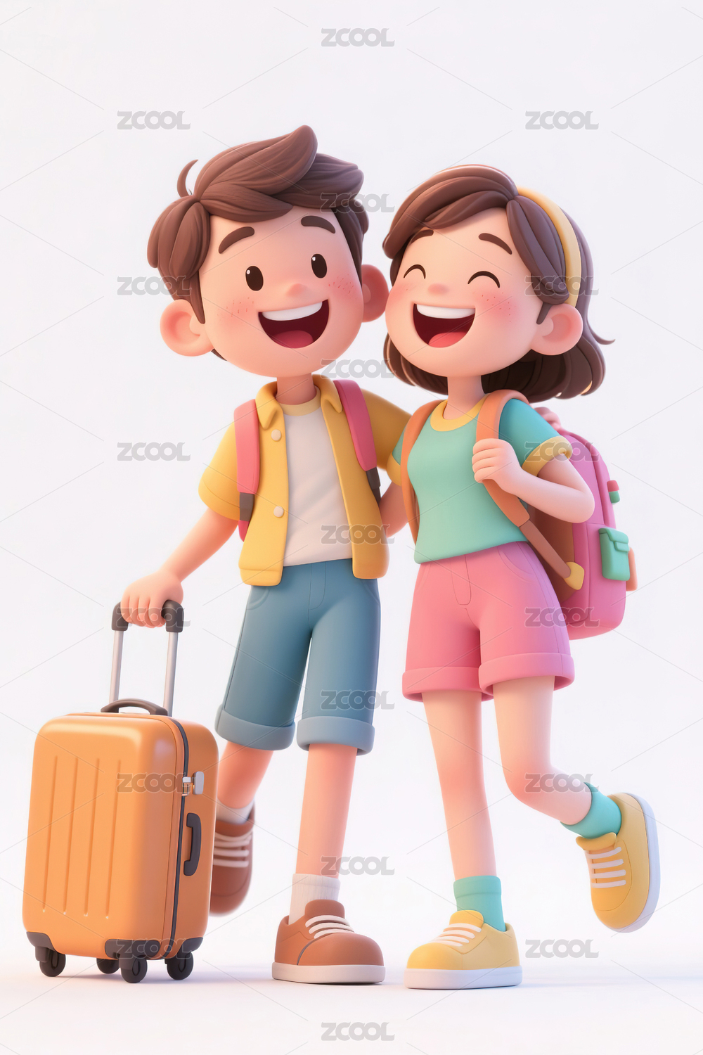 拎着行李旅行的年轻情侣3d插画