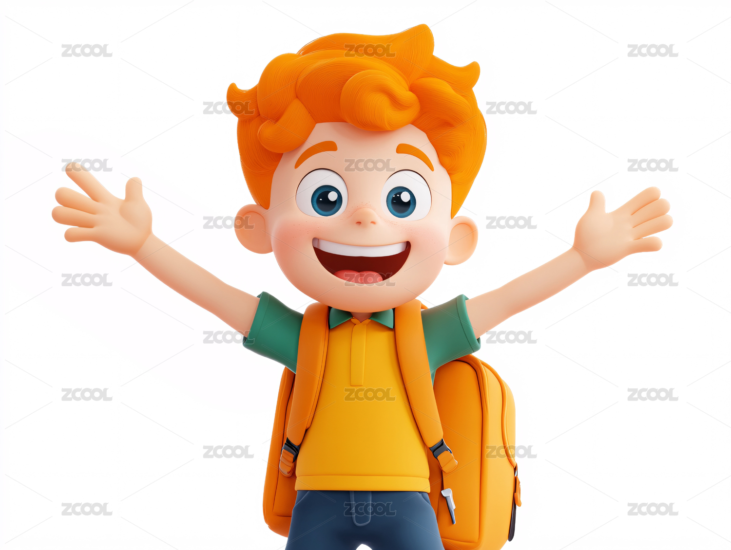3d卡通背着书包去上学的男孩