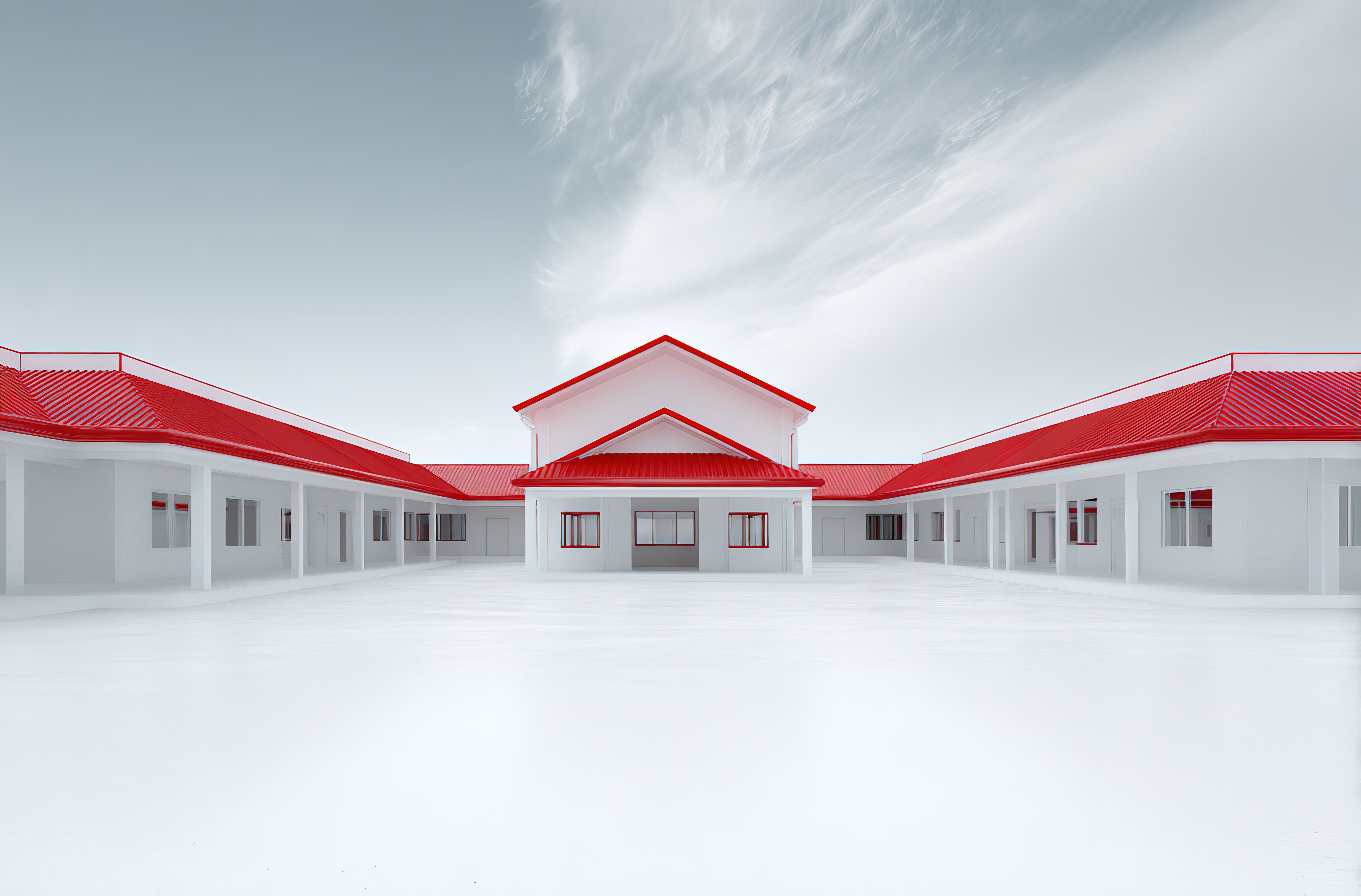红色屋顶的白色建筑群