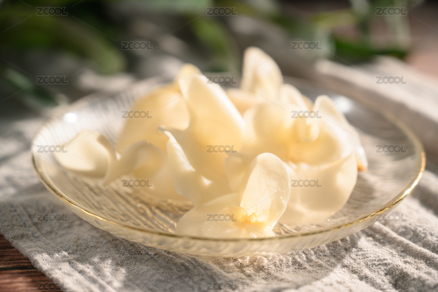 桌面上的盘子里的美味可口的白玉木耳