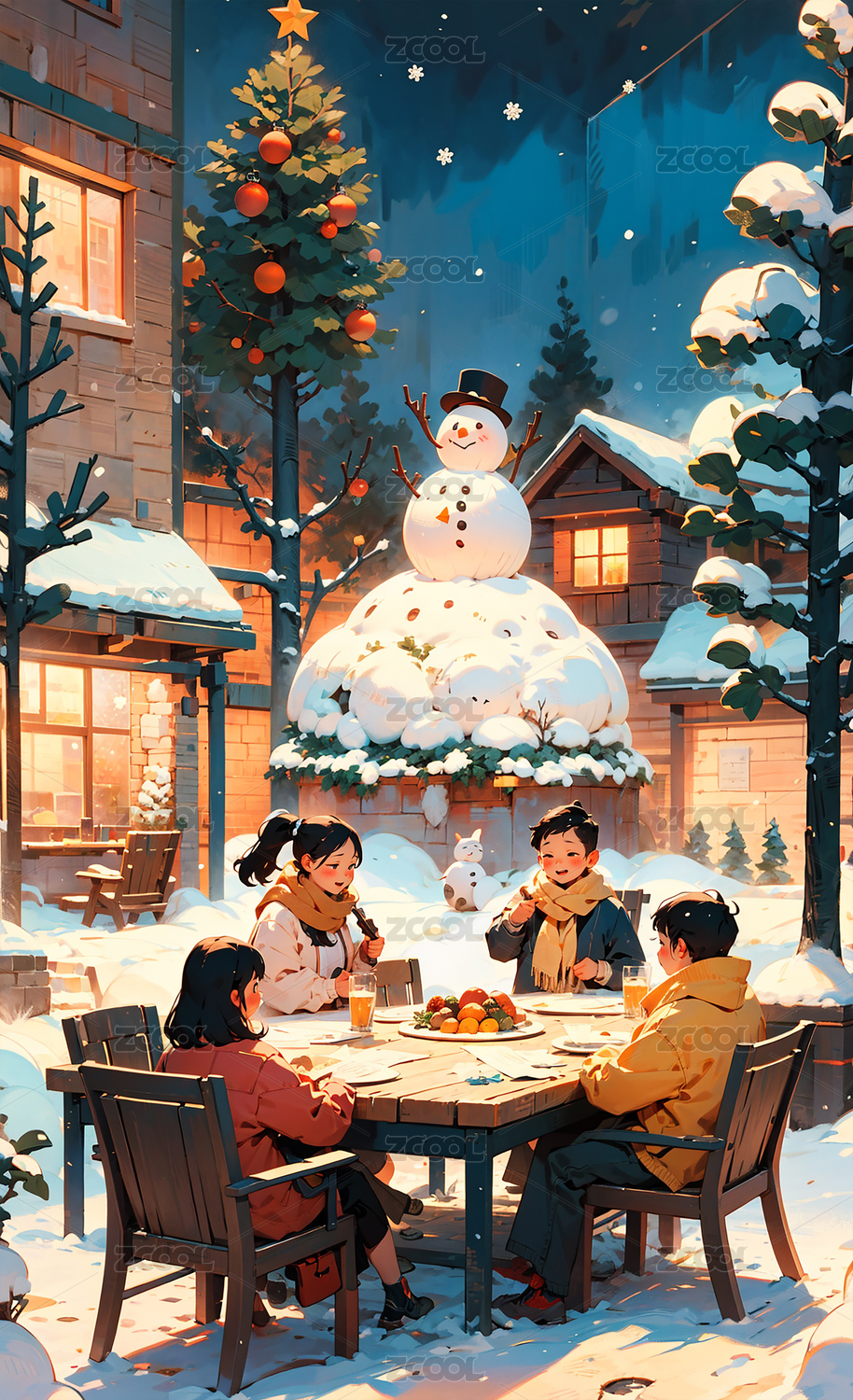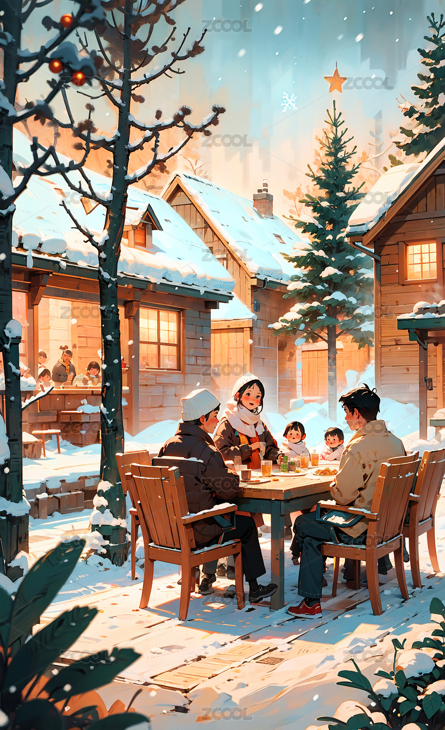 冬季传统节气风景一家人围坐在餐桌旁吃饭