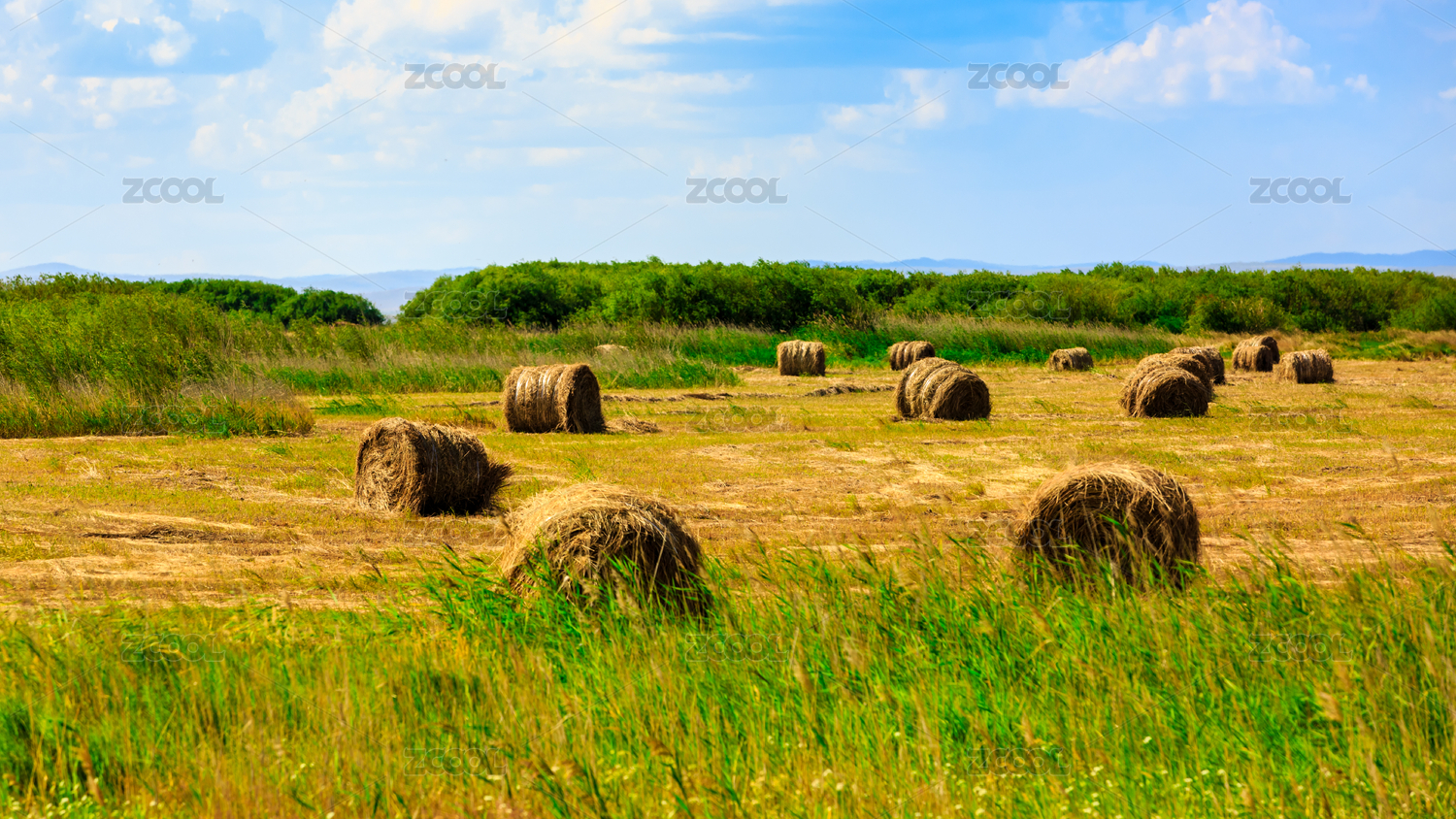 秋天,草原,草卷,牧草,干草卷,草垛,农业,牧业,田园,风景