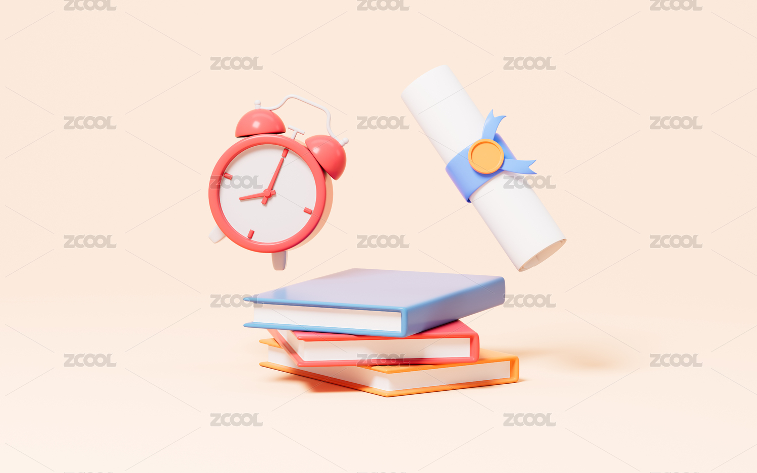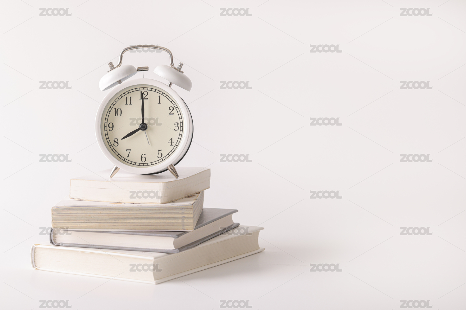 由书本、闹钟和白云字体组成的小清新阅读主题海报