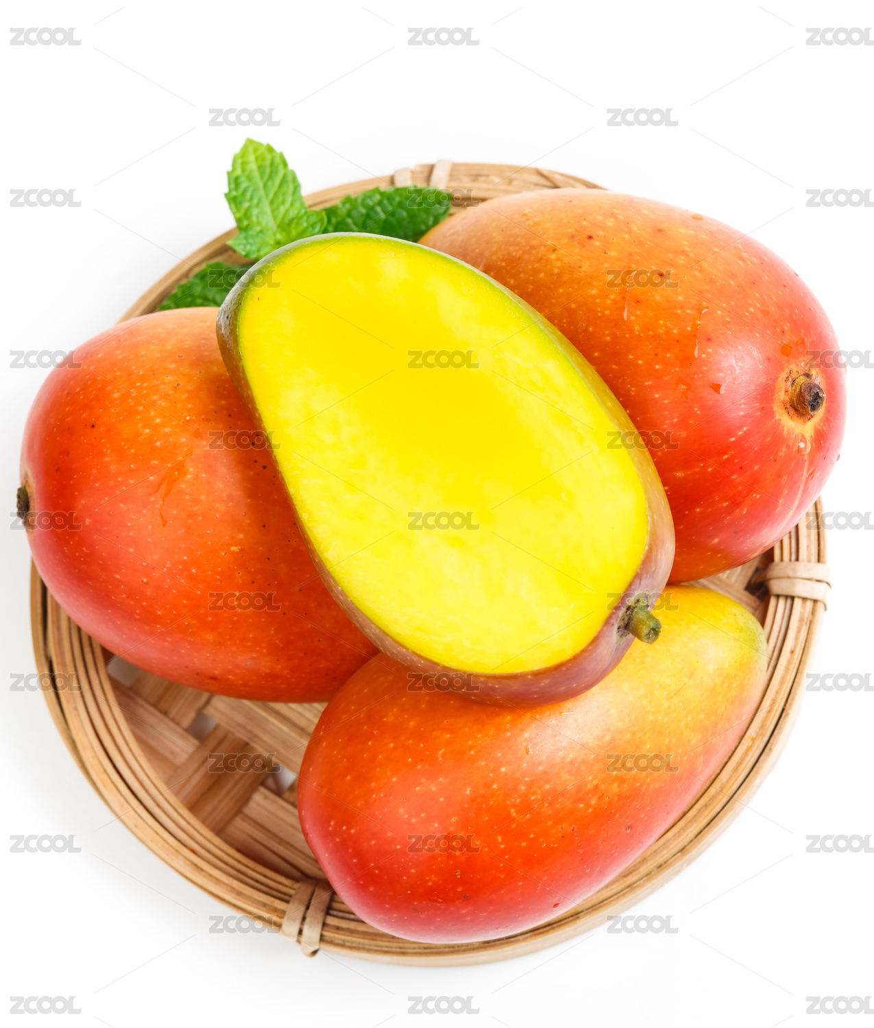 白底上放着一筐彩芒和彩芒果肉