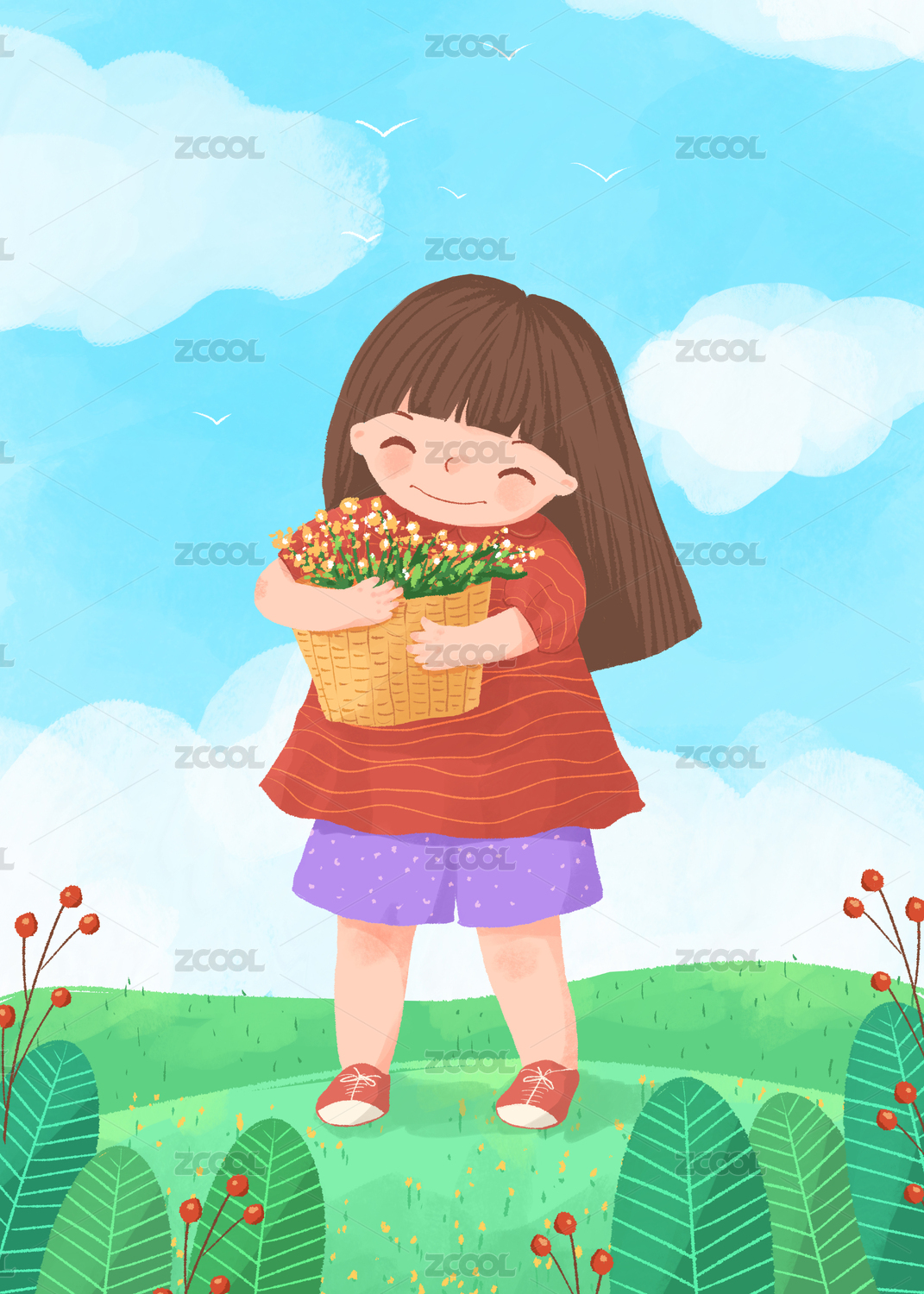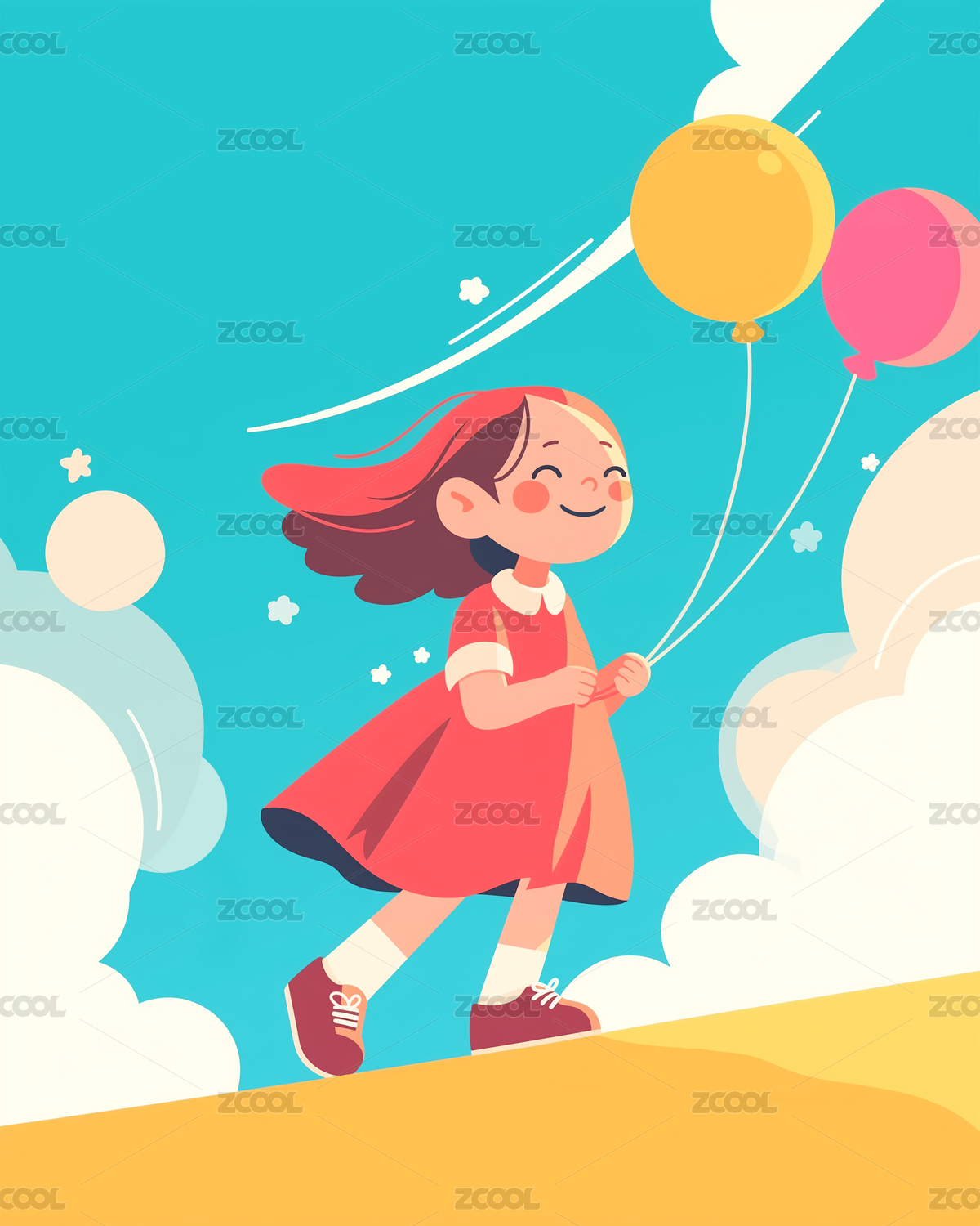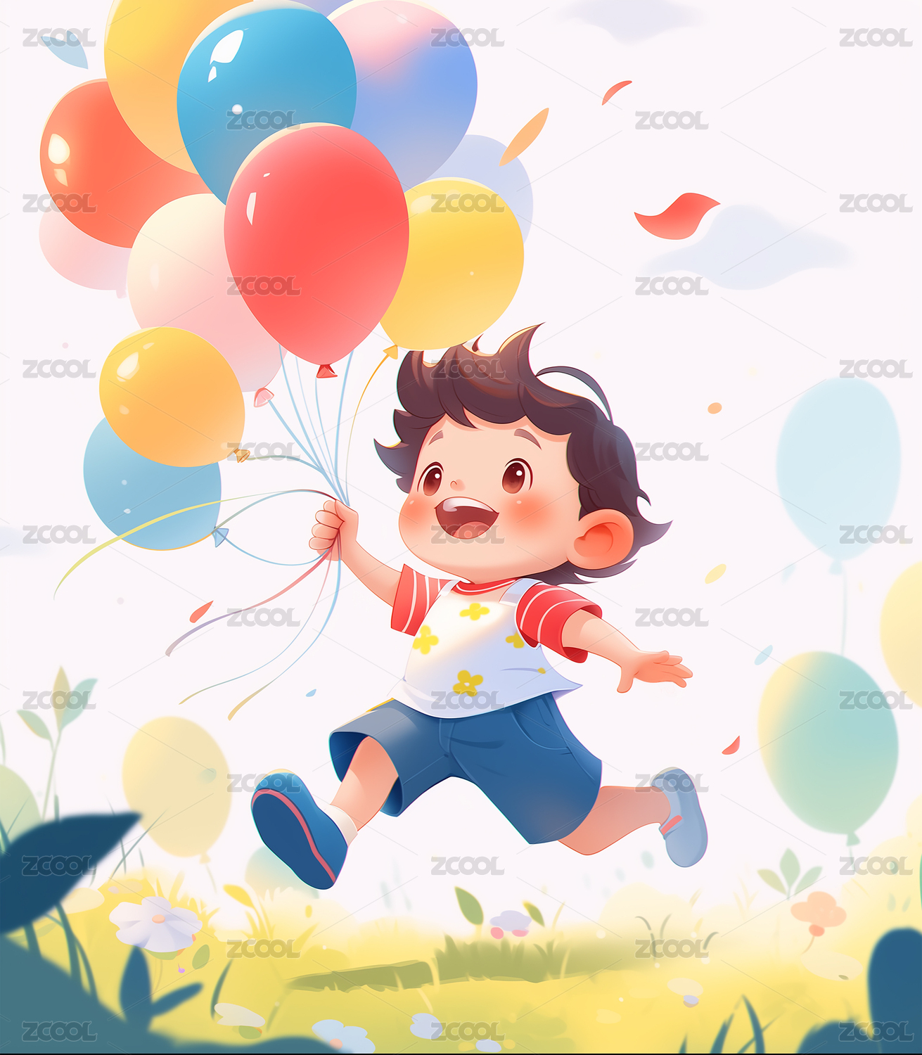 六一儿童节小孩玩气球插画快乐童年活动海报