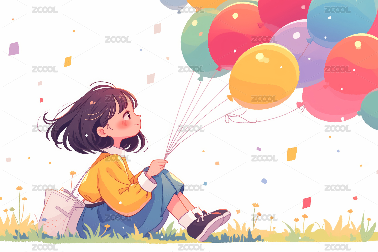 森林春游草地鲜花春天春季儿童气球踏青童趣