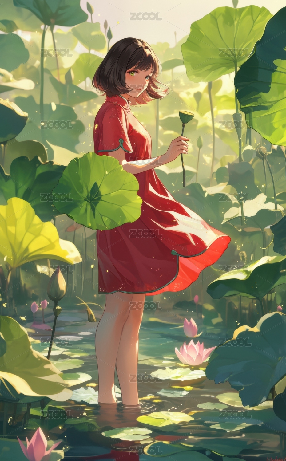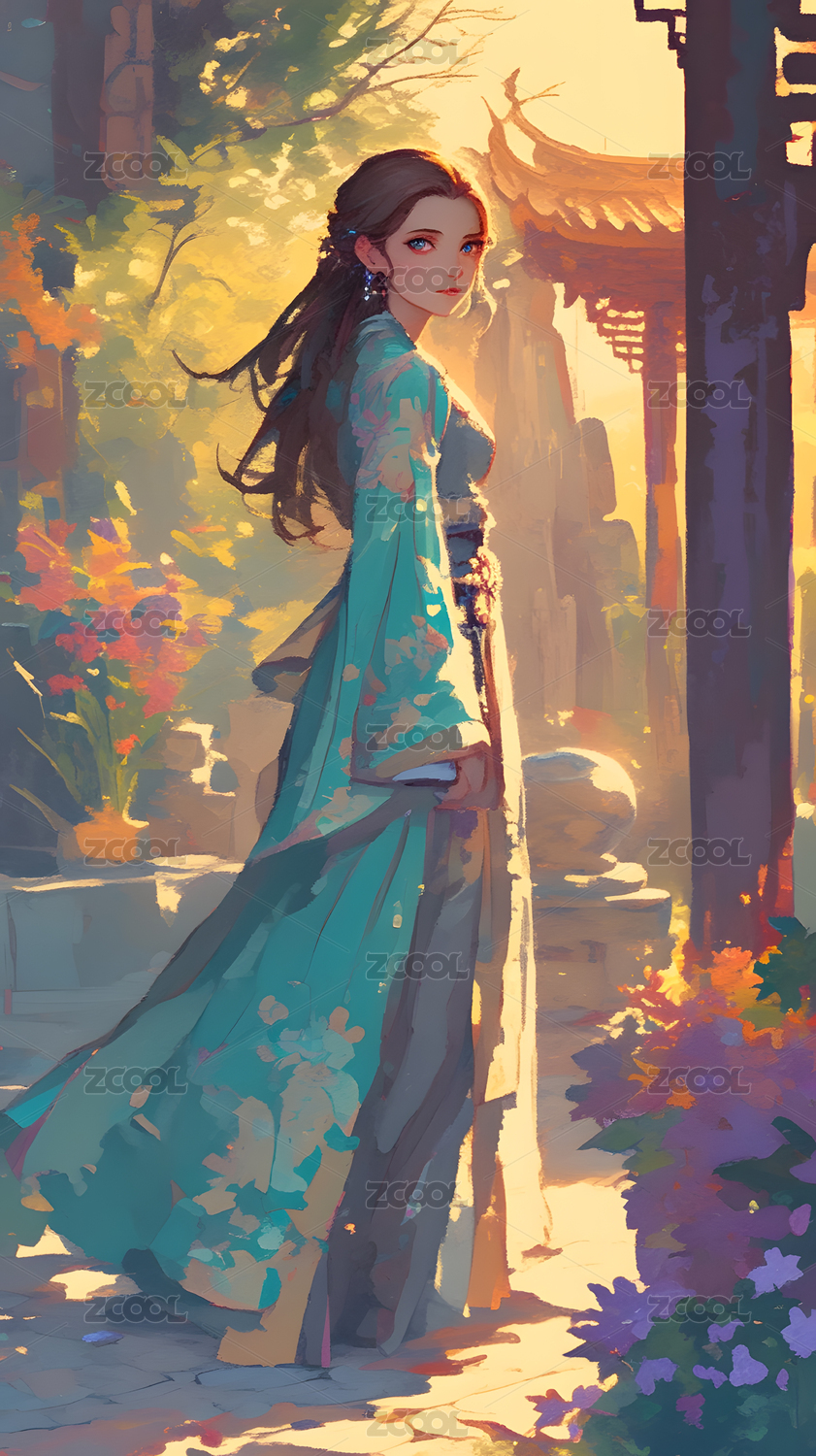 坐秋千上穿着礼服的美女唯美梦幻插画