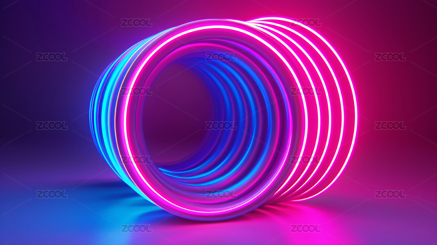 科技感发光光圈色彩斑斓螺旋状线圈概念插图