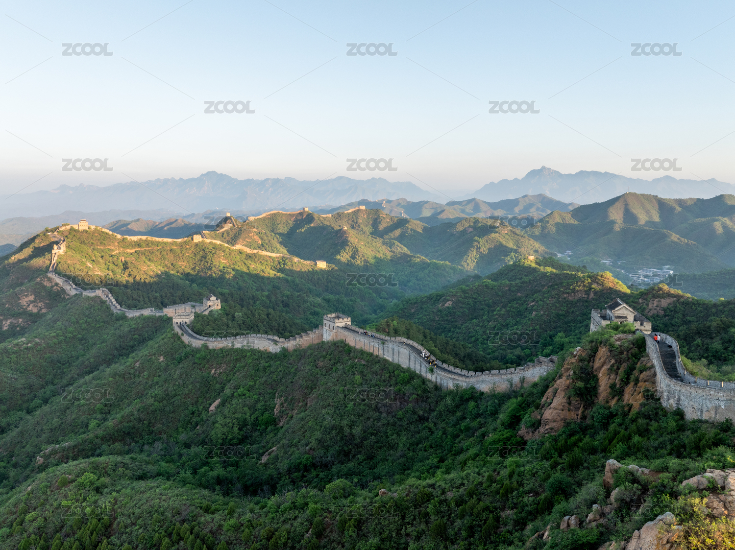 夏季夕阳照耀中国金山岭长城烽火台好风光