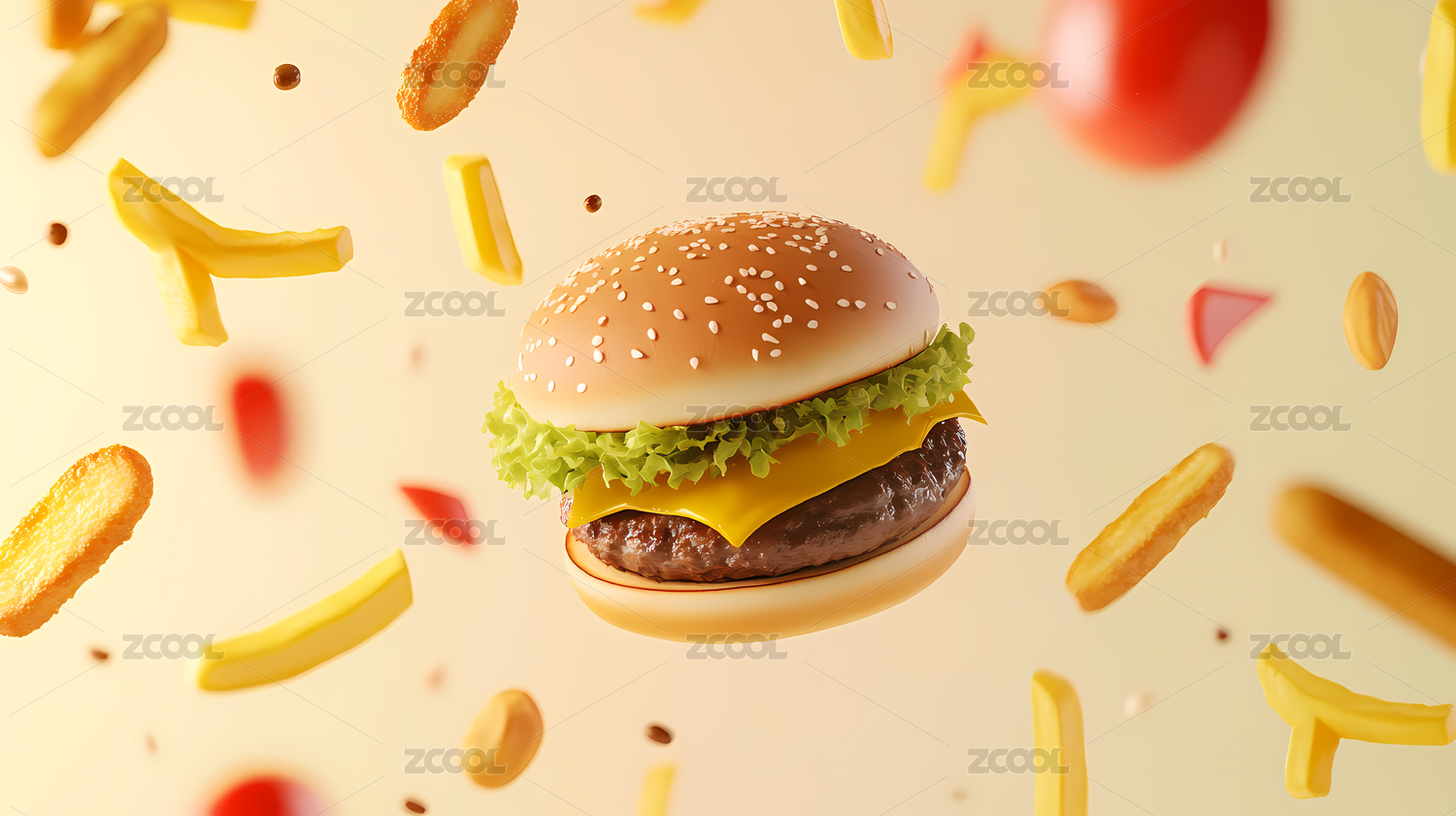 桌上的糖果色汉堡包玩具3D卡通立体插画