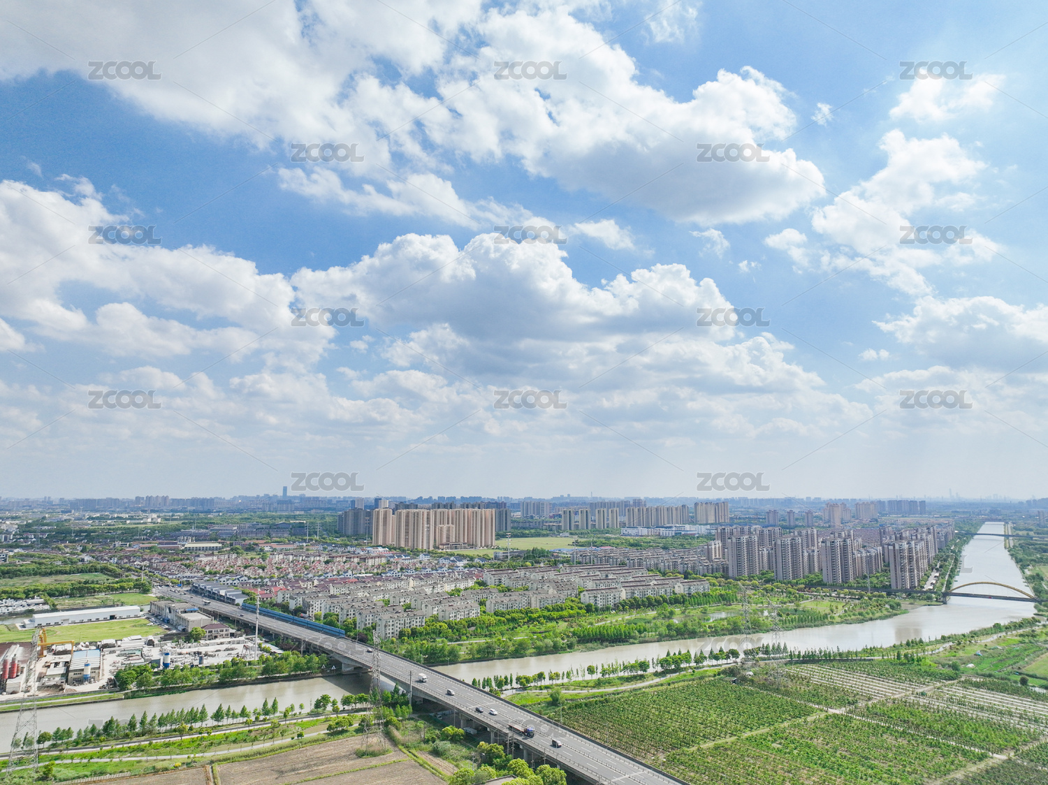 航拍,江苏,苏州,昆山,乡村,农村,建筑,农田,天空,云