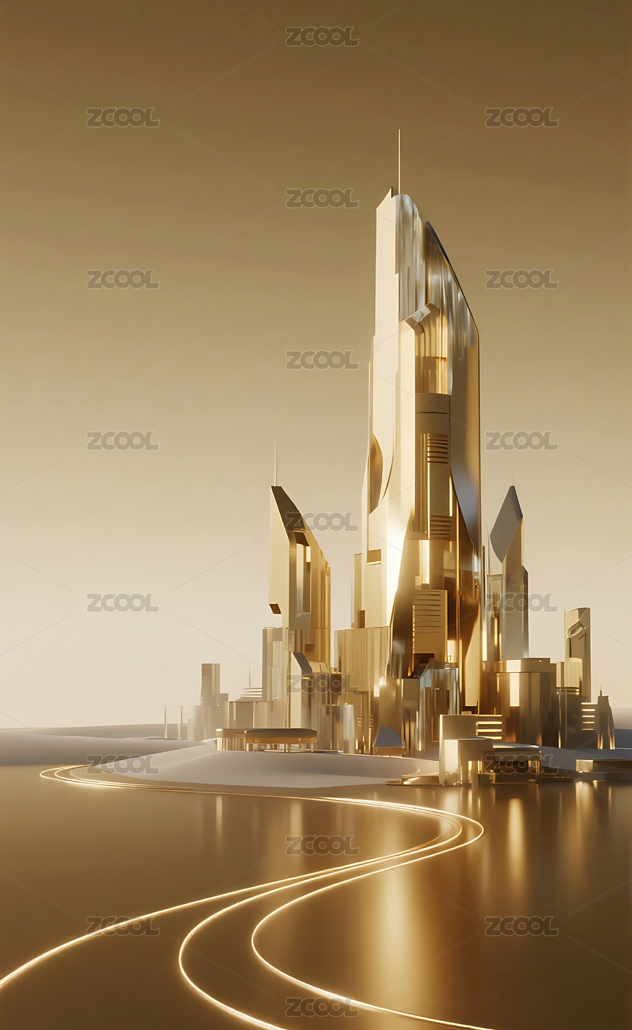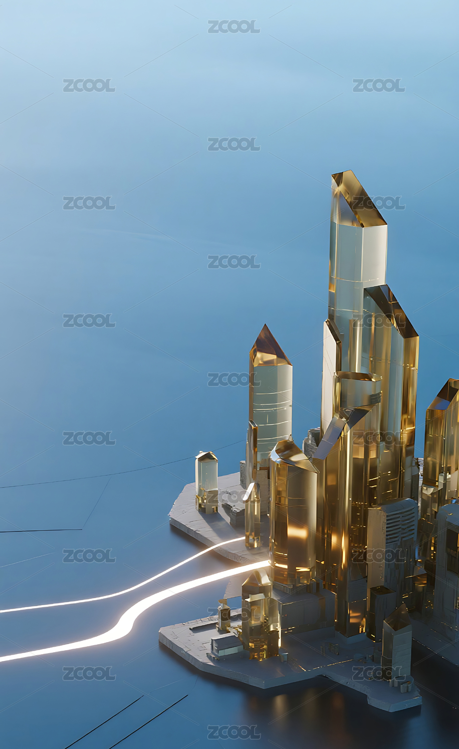 金色水晶质感城市建筑