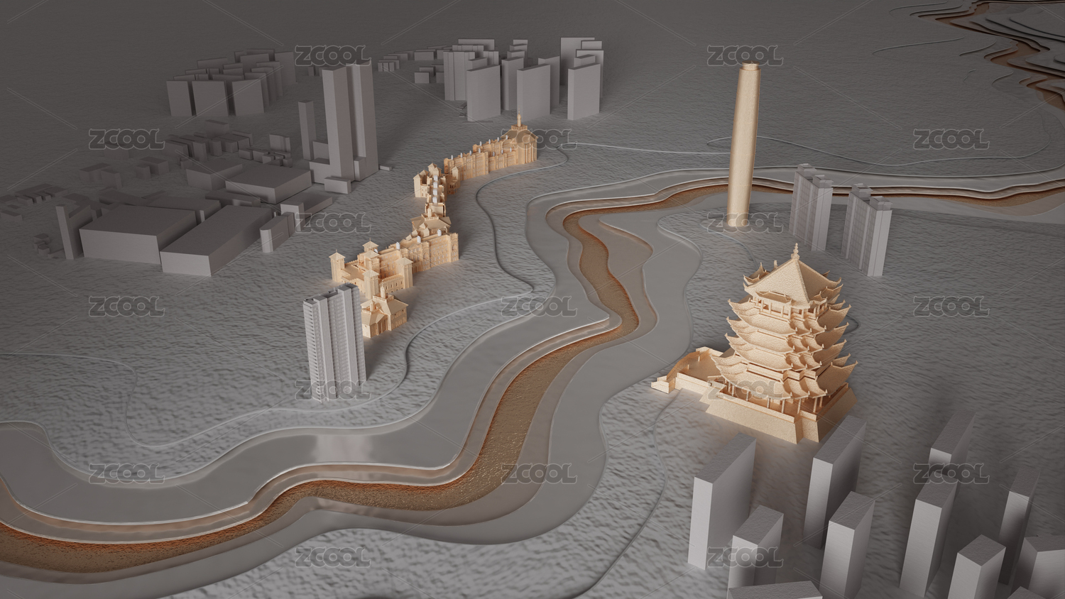 武汉城市创意场景三维渲染商业插图