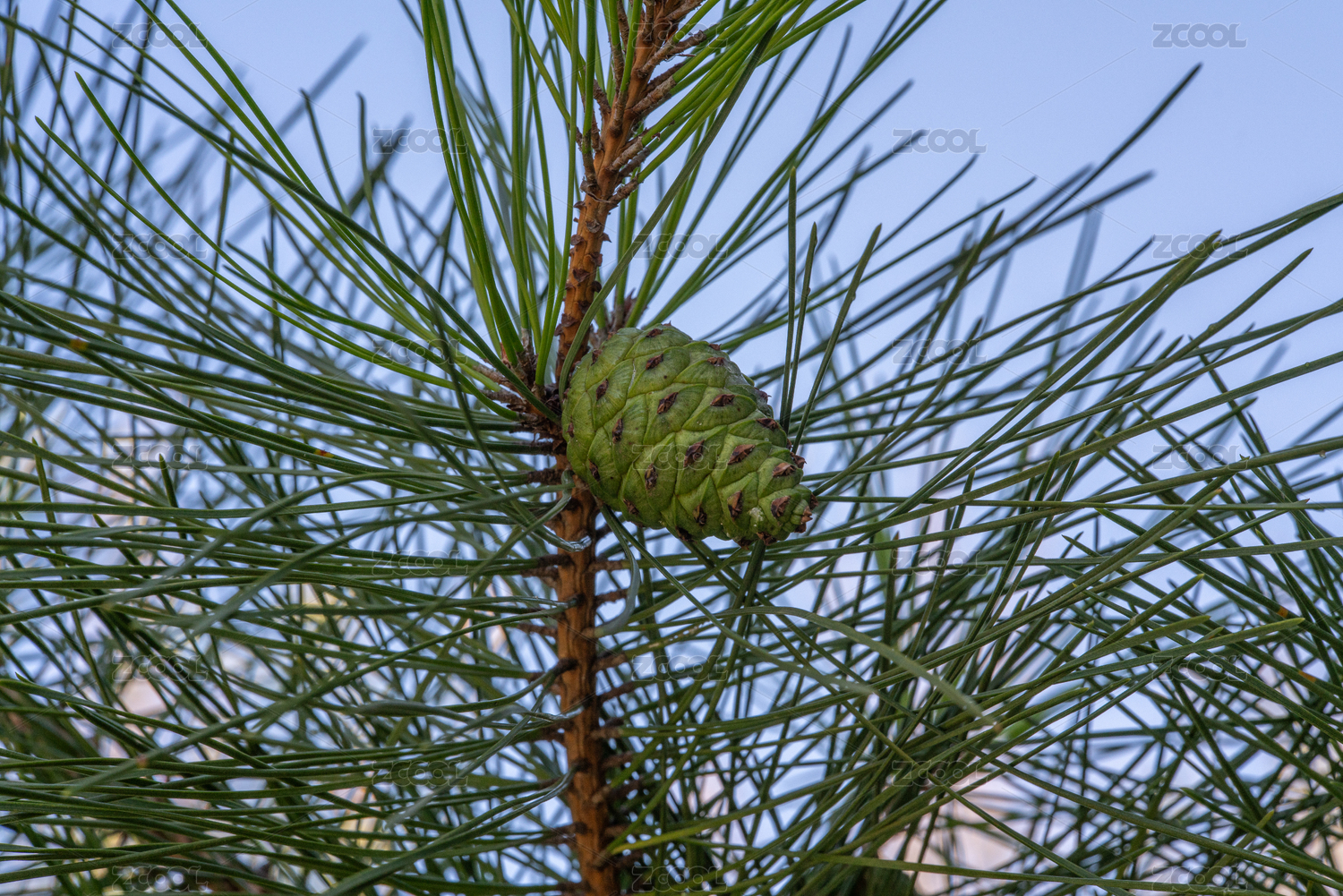 枝头的翠绿松果