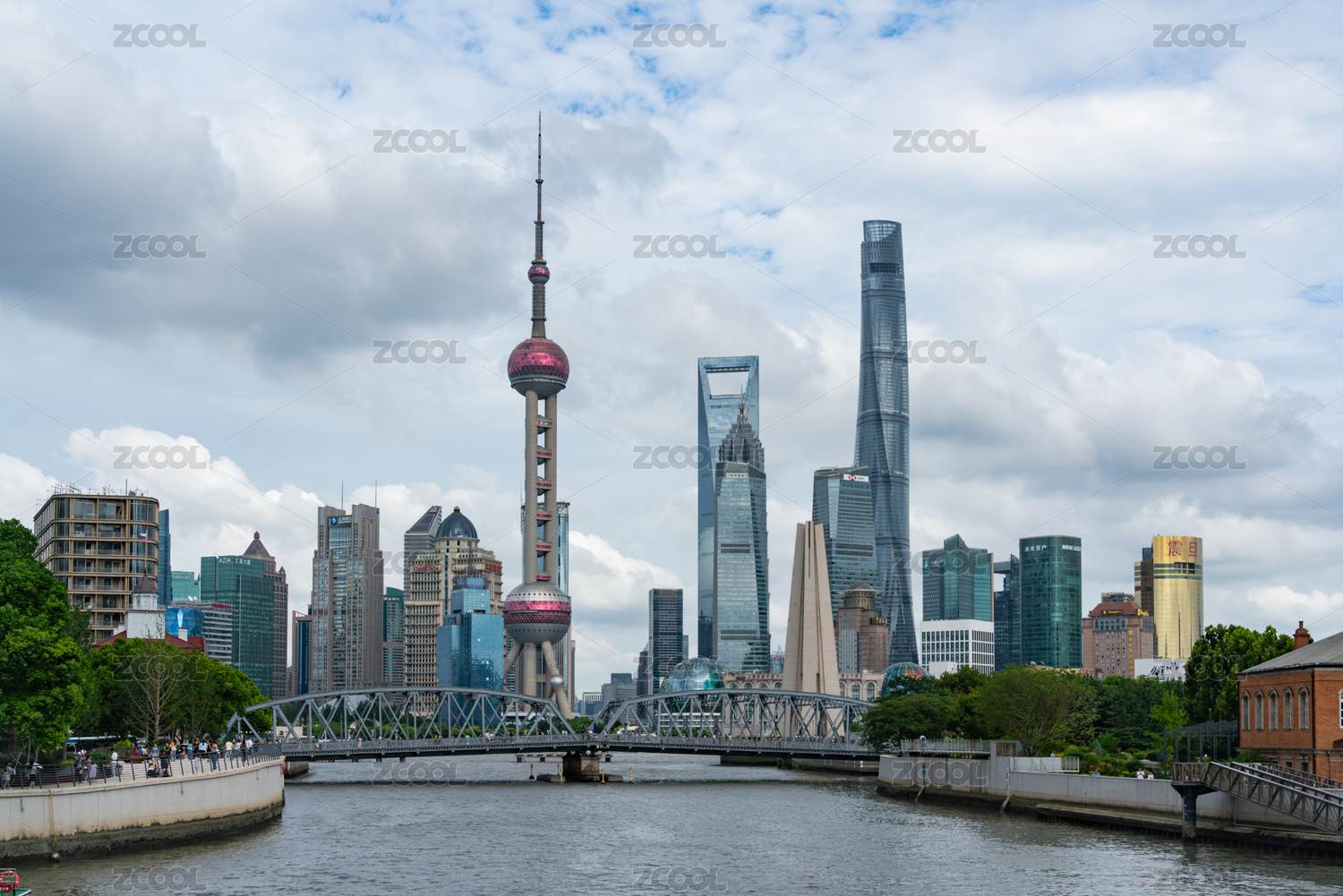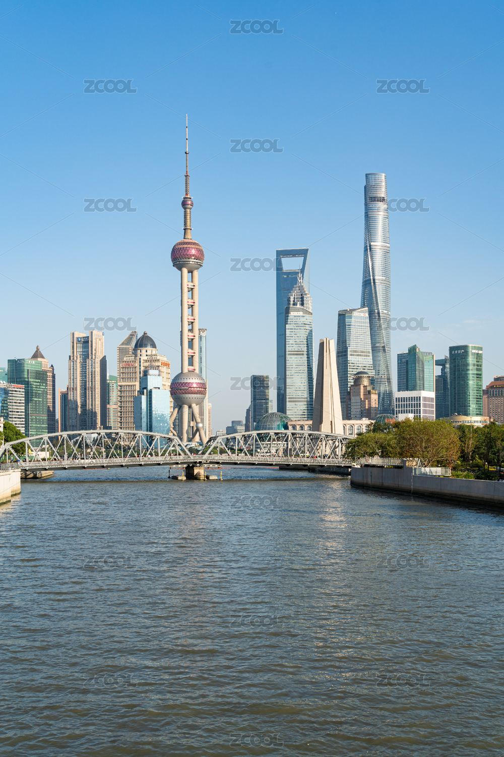 上海外滩外白渡桥与陆家嘴CBD城市天际线