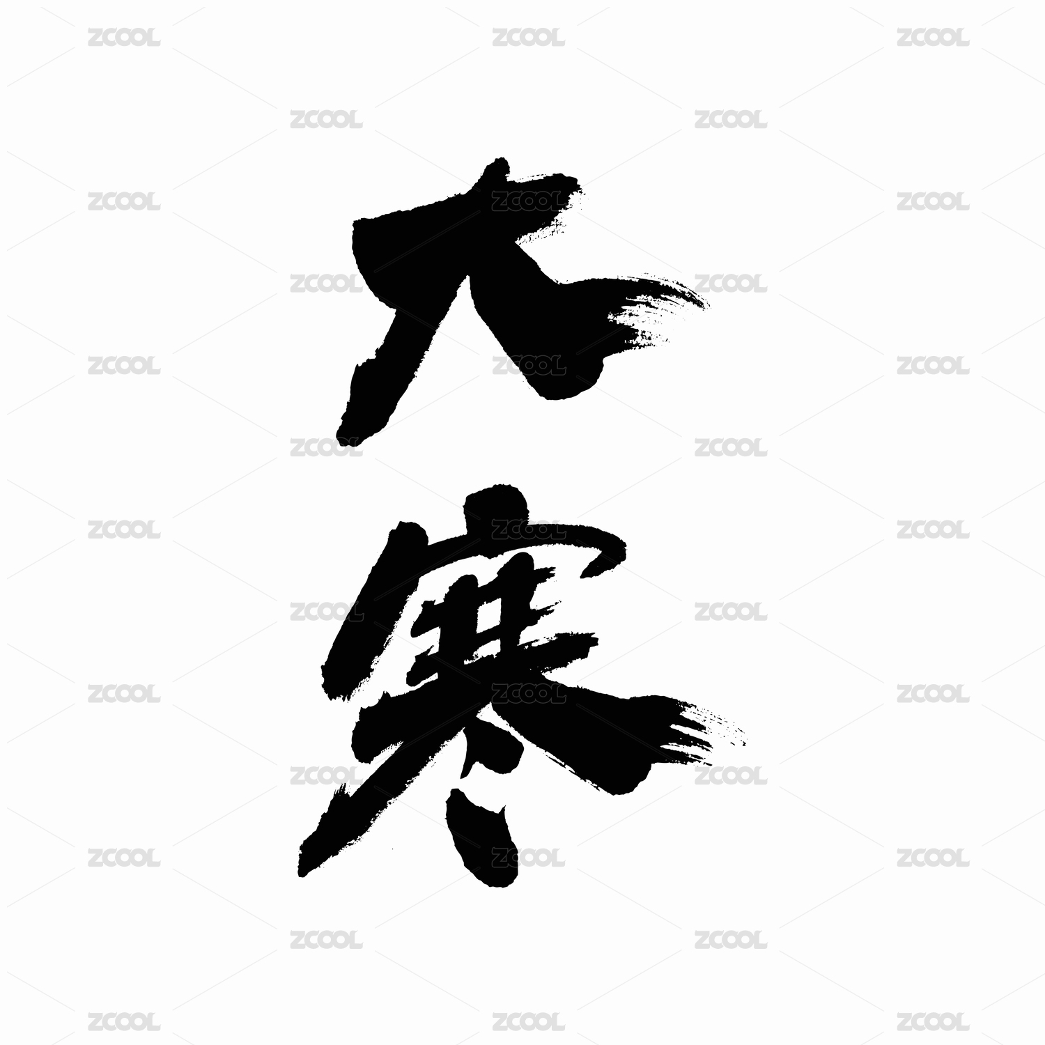 大寒,中国,传统,节气,节日,农历,书法字,水墨,金色,金属