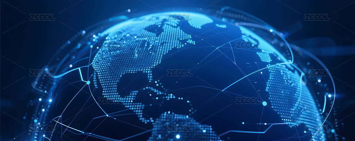 点和线连接组成的抽象地球,代表互联网、高科技,全球化、国际化,大数据科技背景图