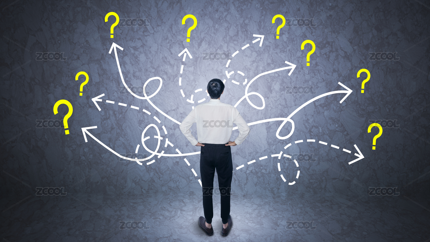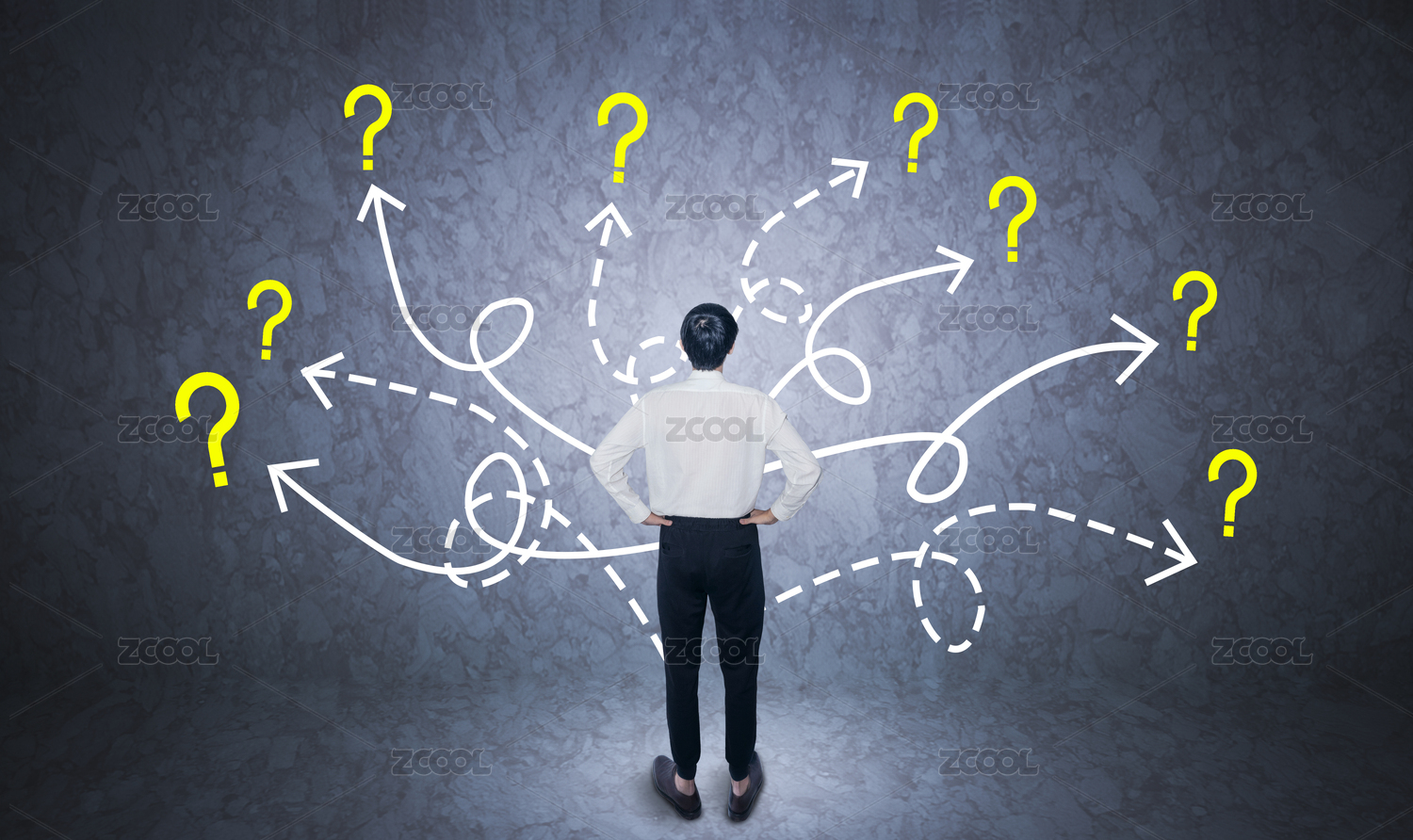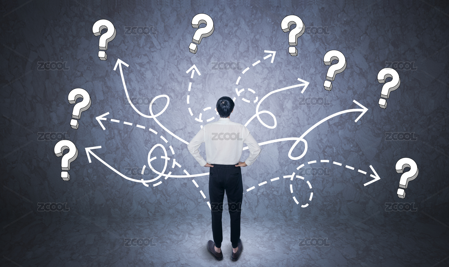 商务人士职场感觉思绪思路很乱问号不知所措抉择选择判断概念