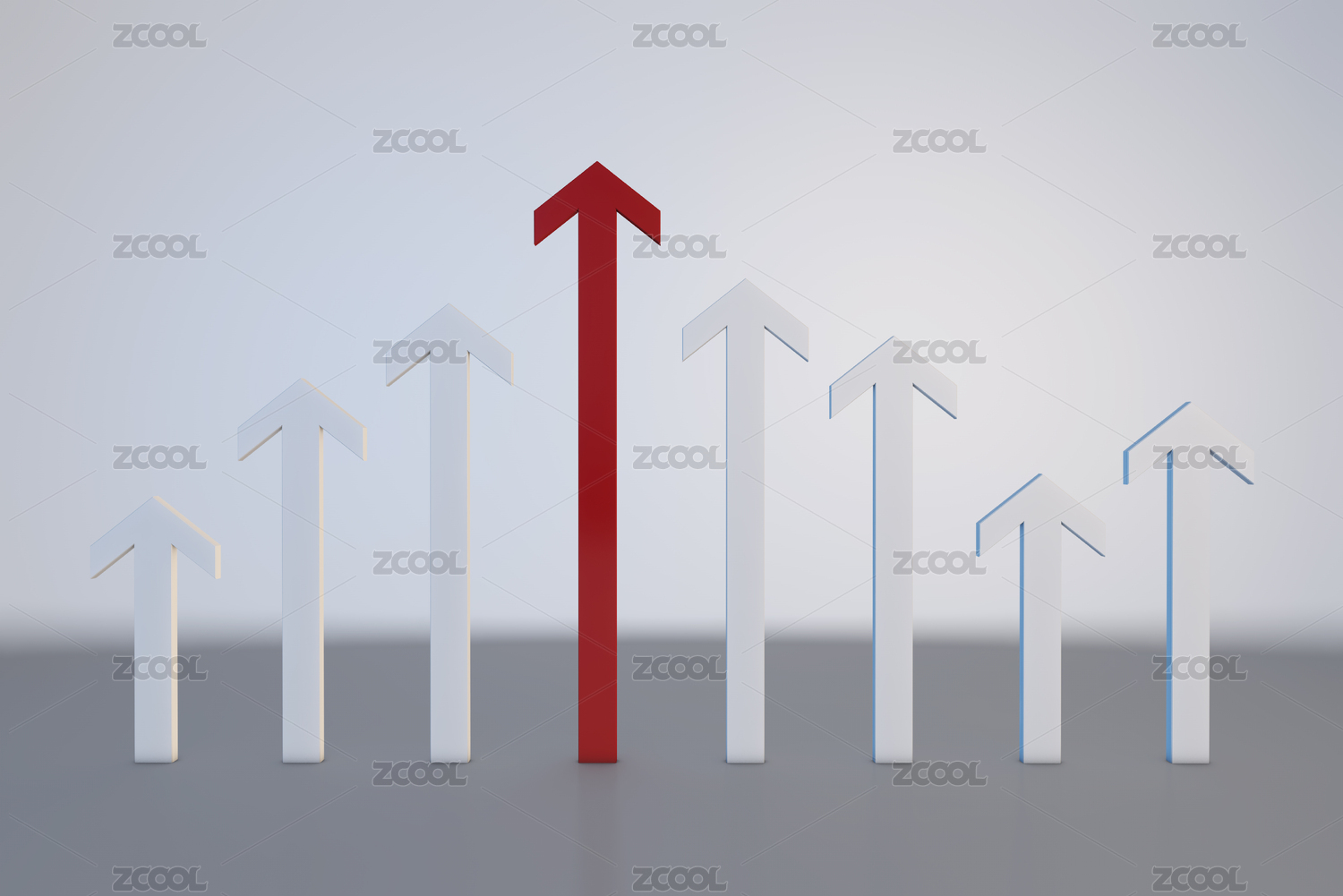 红色成功箭头,获取成就与成绩,领头者与行业领导