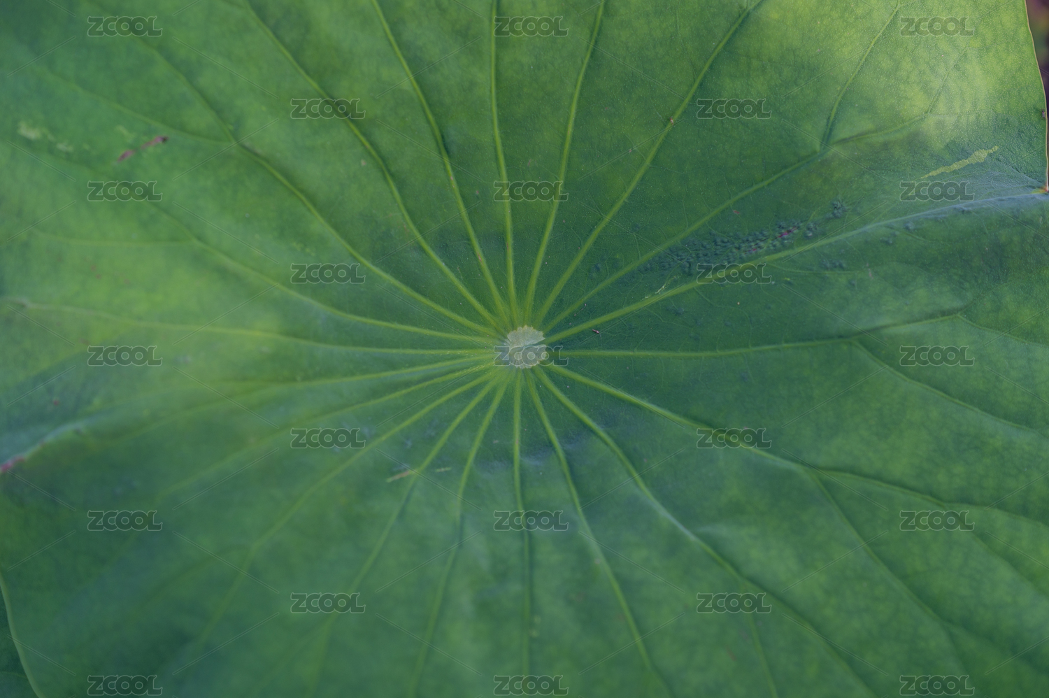 绿色荷叶上有一滴水珠,叶脉清晰成放射状