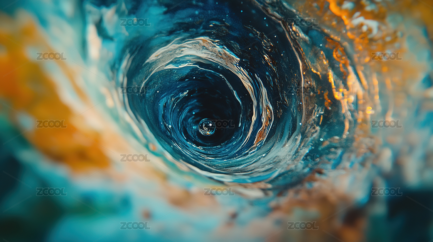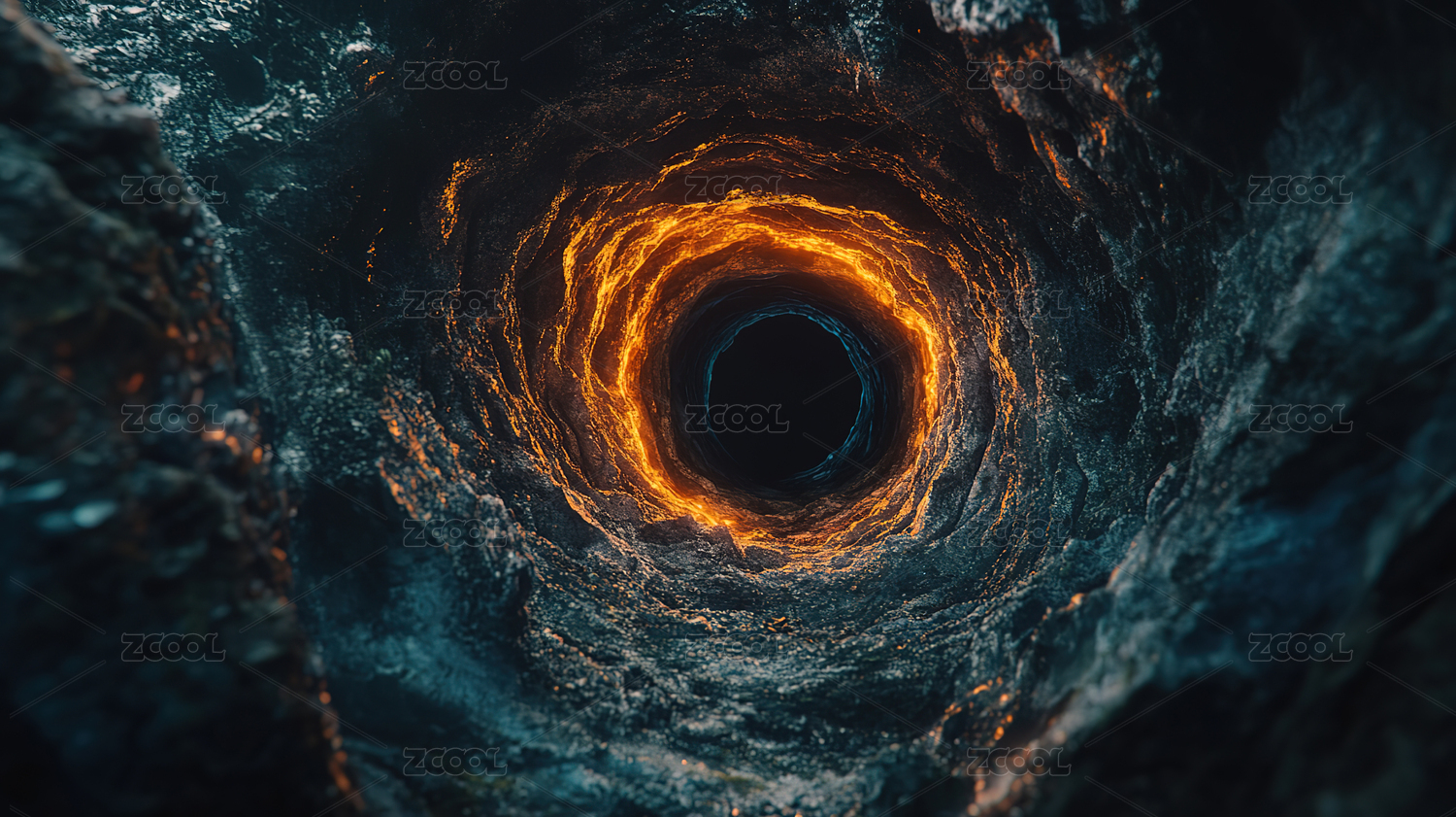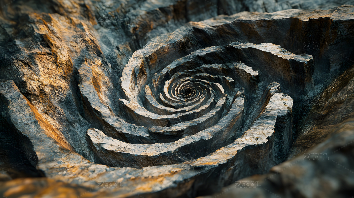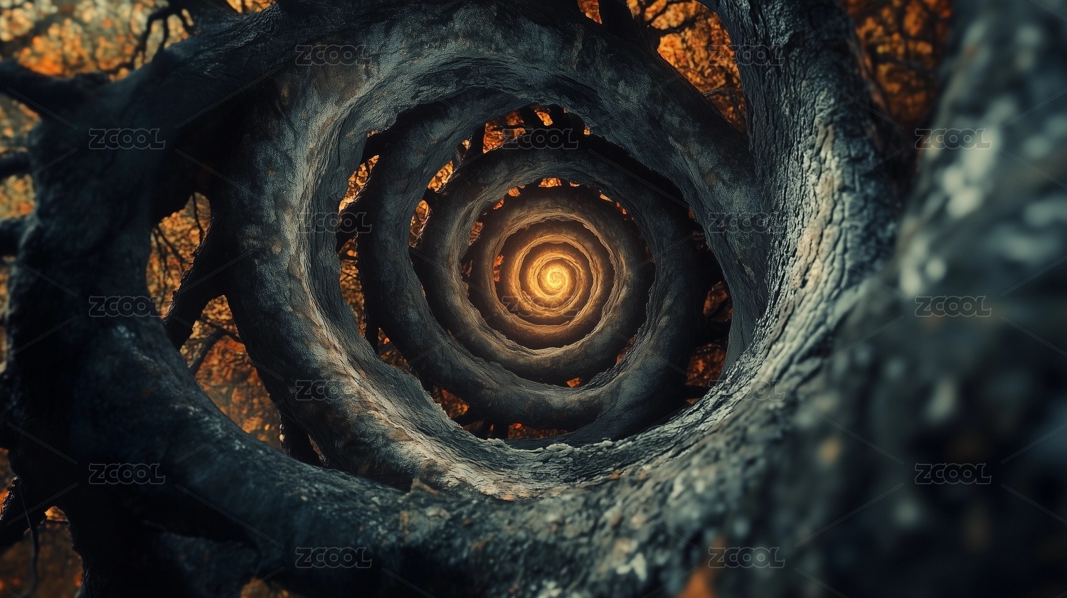 神秘黑暗螺旋隧道与金色光芒艺术特写
