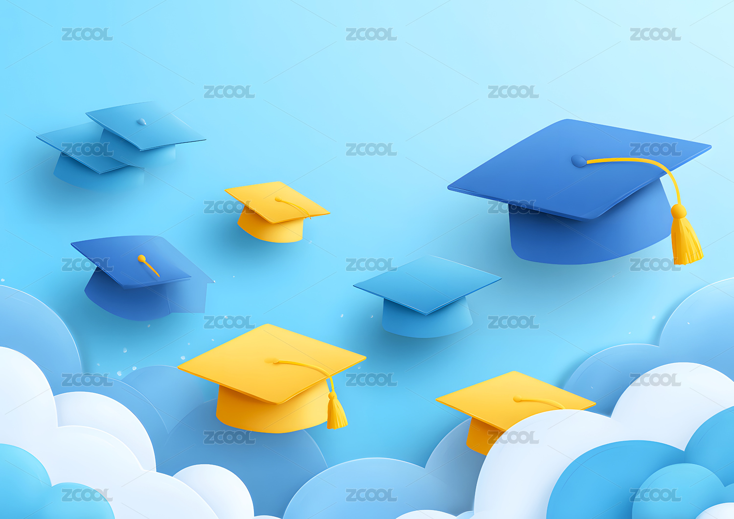 毕业典礼毕业帽庆祝学位3d渲染背景