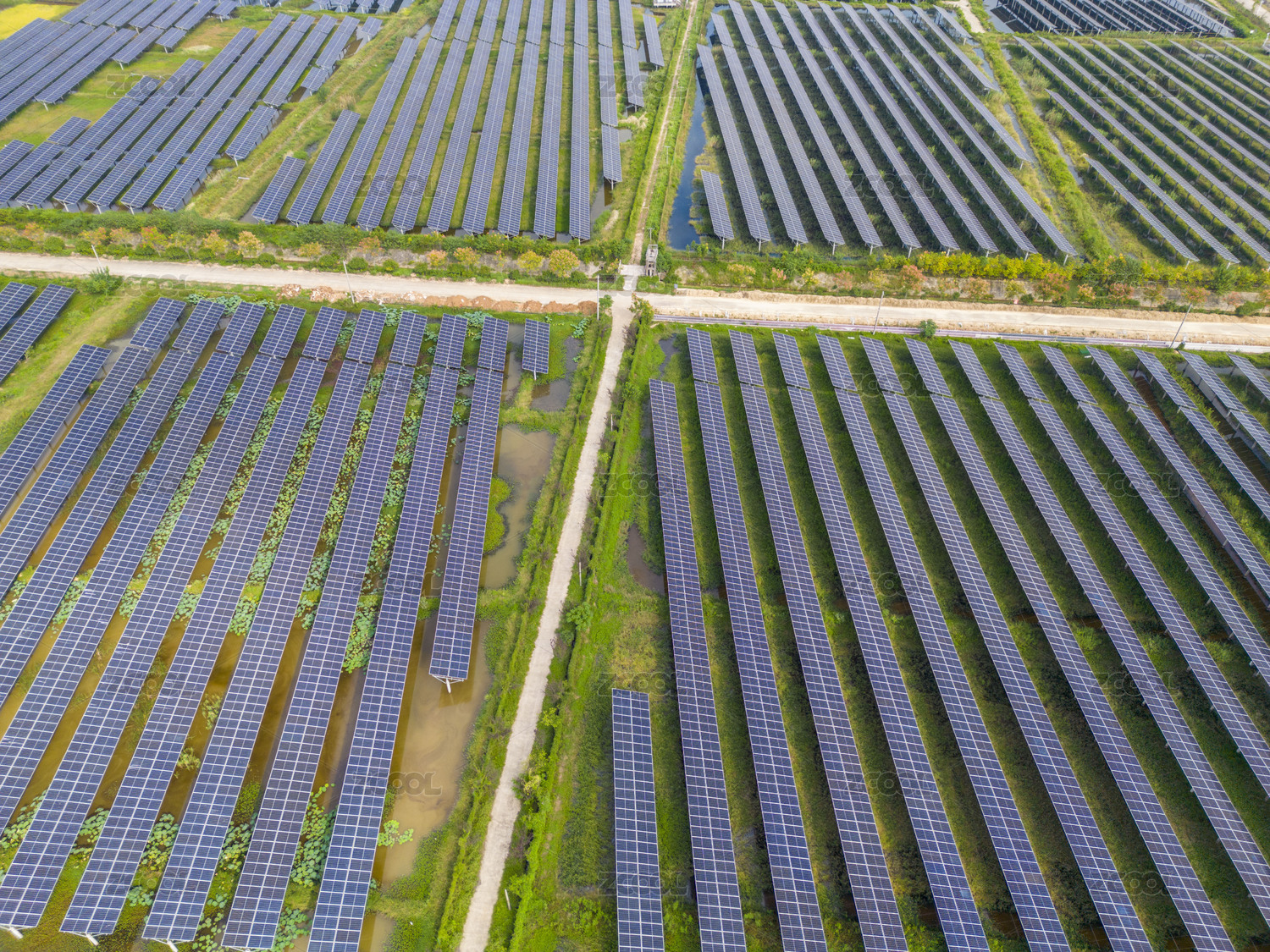 航拍中国安徽省宣城市宣州区洪林镇渔光互补