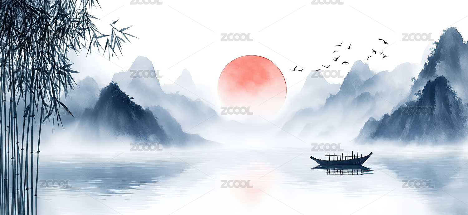 中式国潮自然风景水墨画