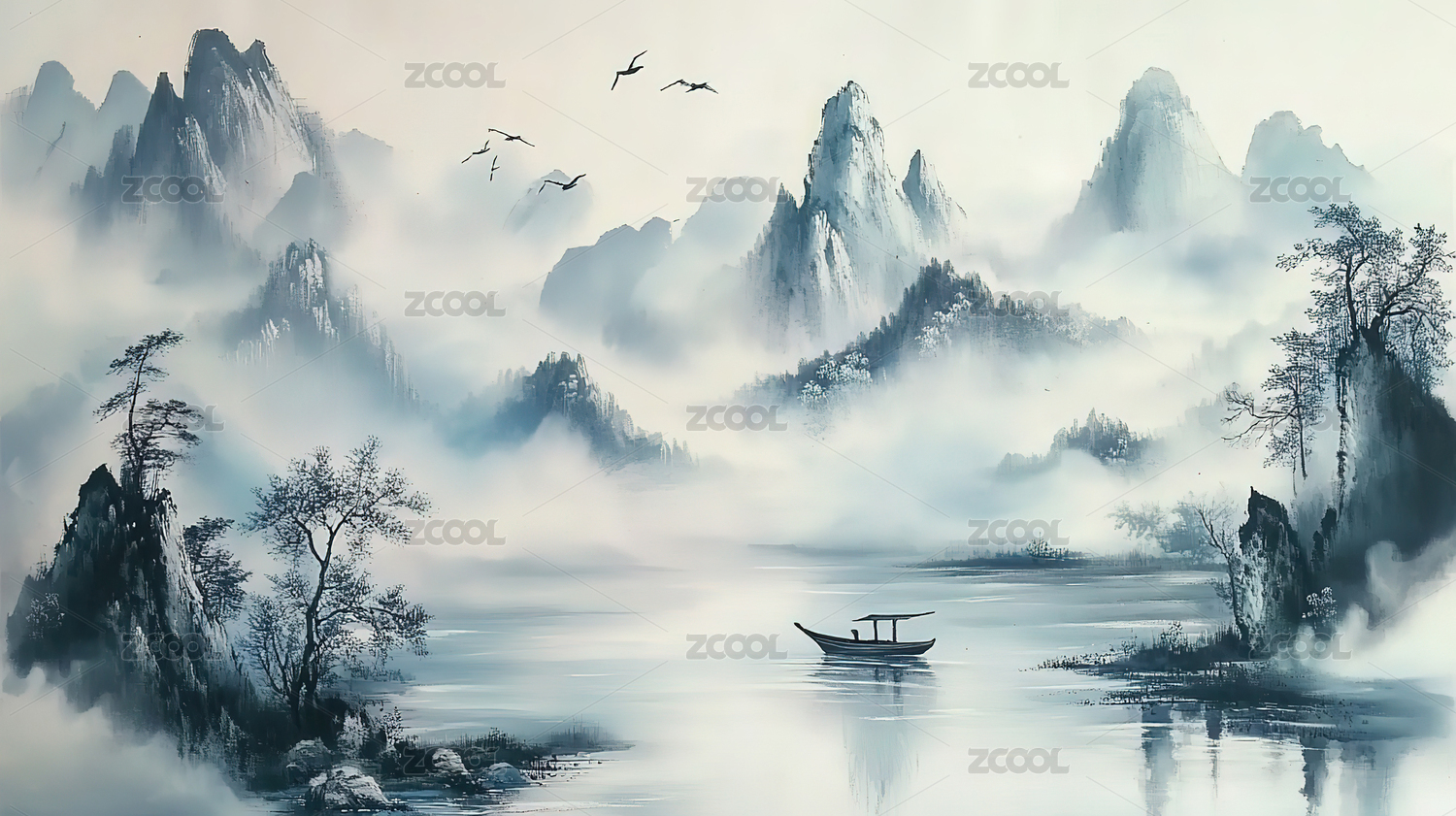 国风中式禅意水墨画