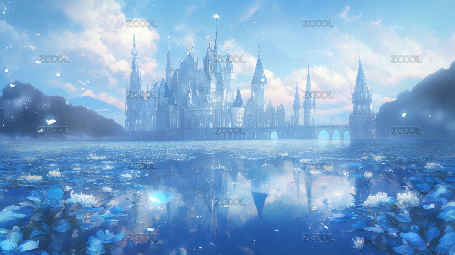 宫殿,云雾缭绕,山峰,层叠的屋檐,宫殿建筑,窗户,门廊,伊斯兰风格,圆顶,尖塔