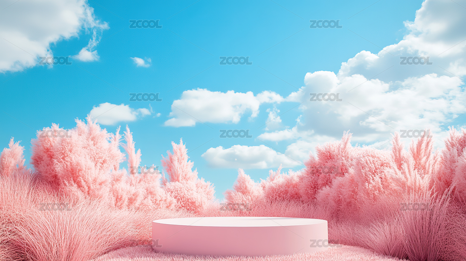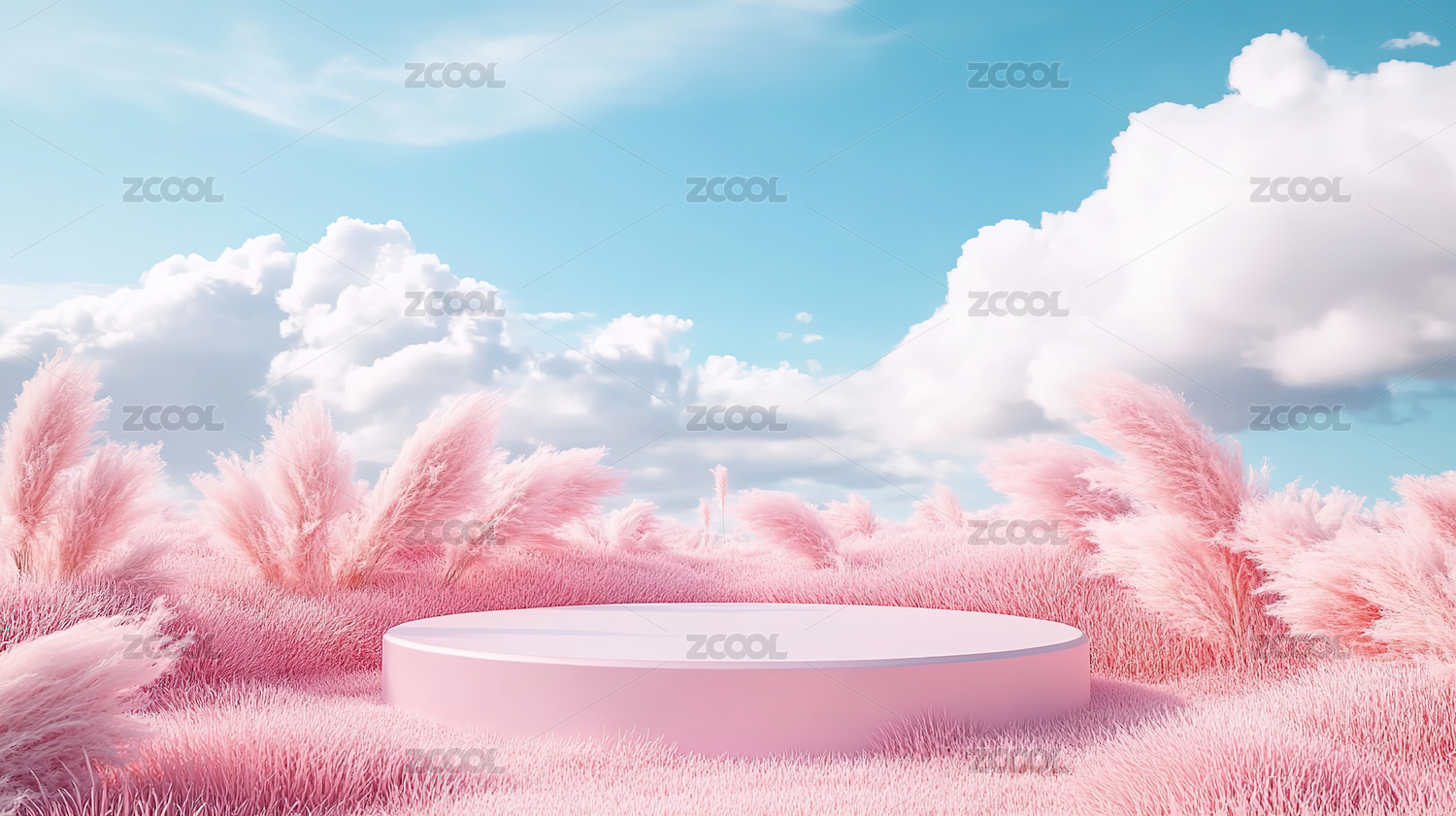 三维渲染粉色产品展台天空背景