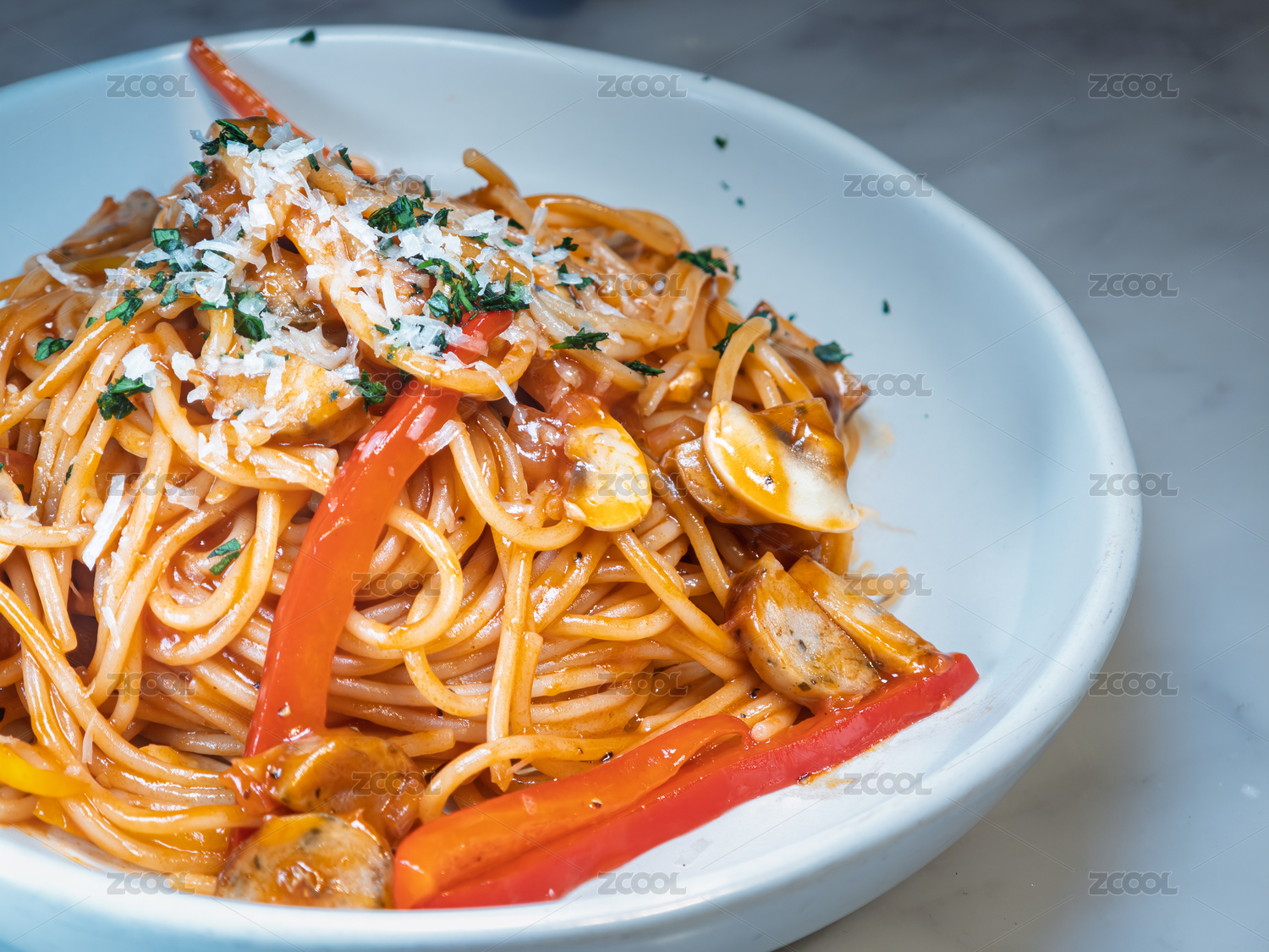 可口,吃的,圆形陶瓷盘,圣女果,小番茄,意大利面条,意面,洋葱,瓷盘,番茄