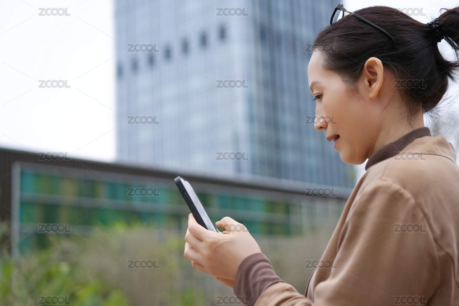 女性,智能手机,城市,微笑,通信,现代,建筑,户外,生活,连接