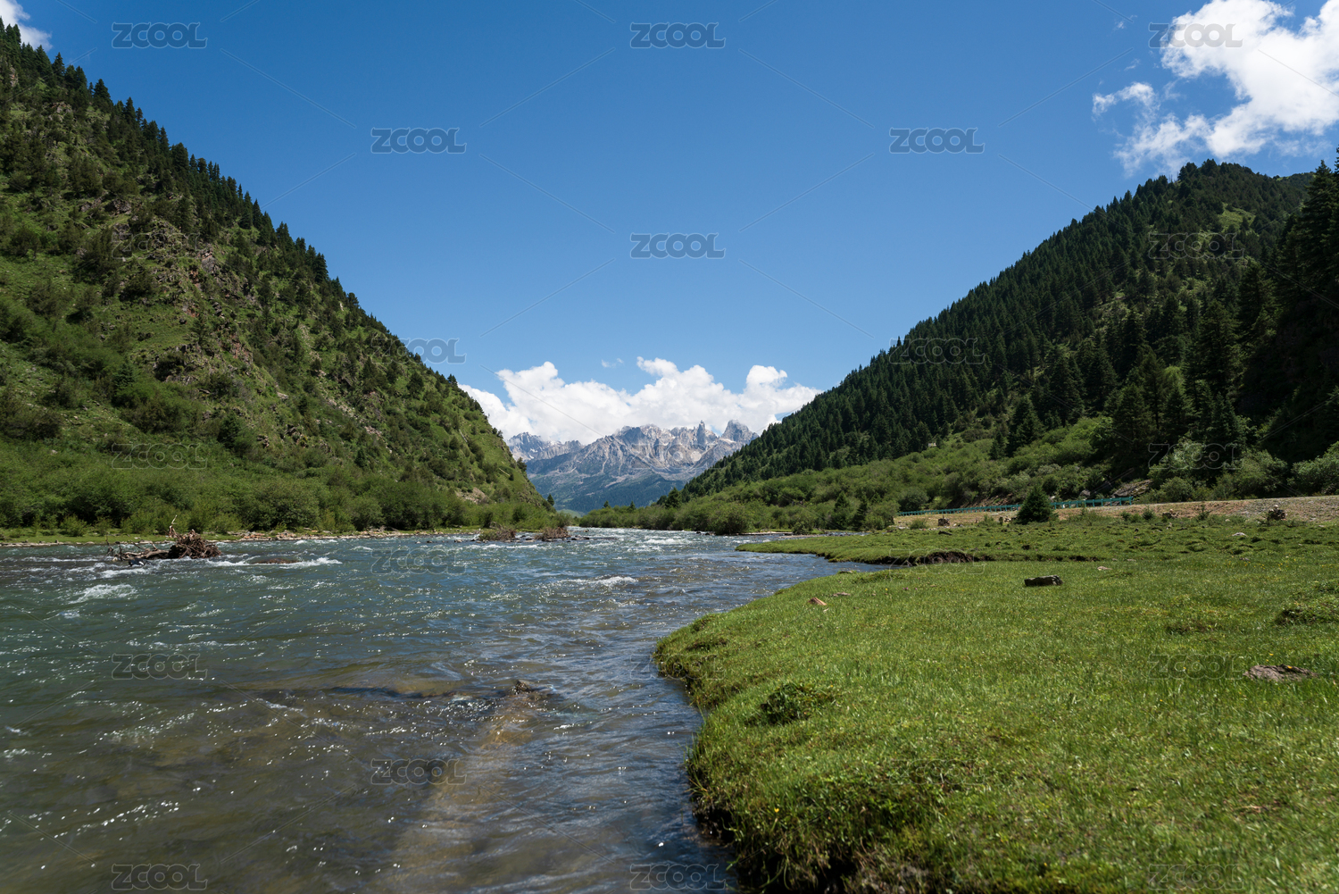 四川甘孜藏族自治州夏天草原山水雪山自然风