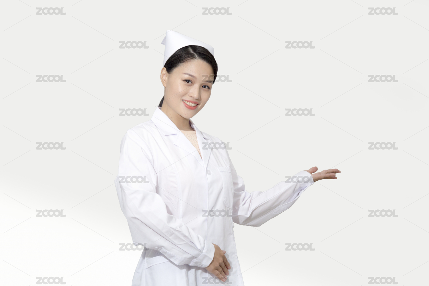 女性医护人员伸手欢迎介绍手势