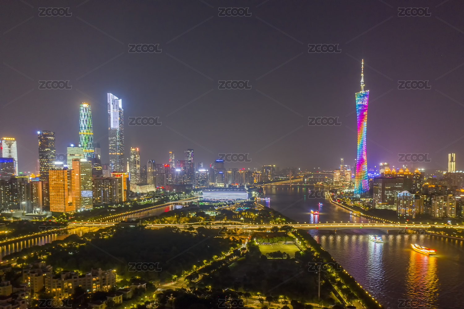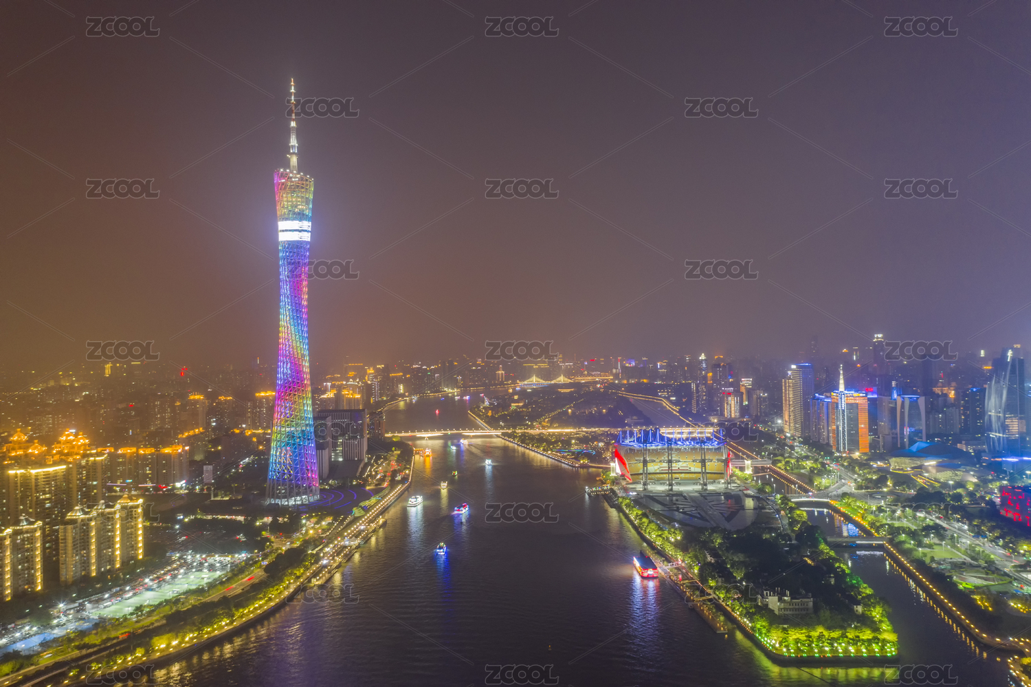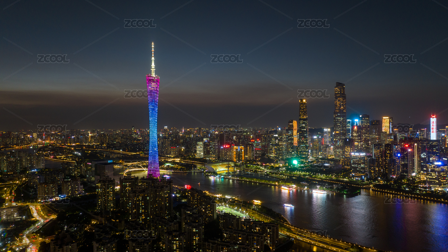 中国广东省广州市珠江两岸城市夜景