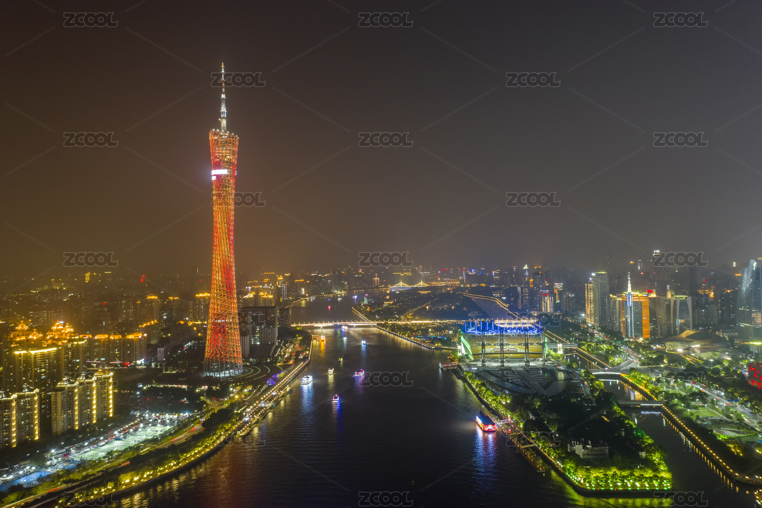 中国广州珠江两岸城市夜景