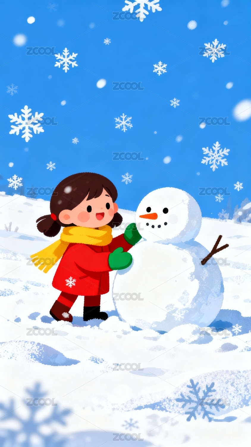 冬日女孩与雪人