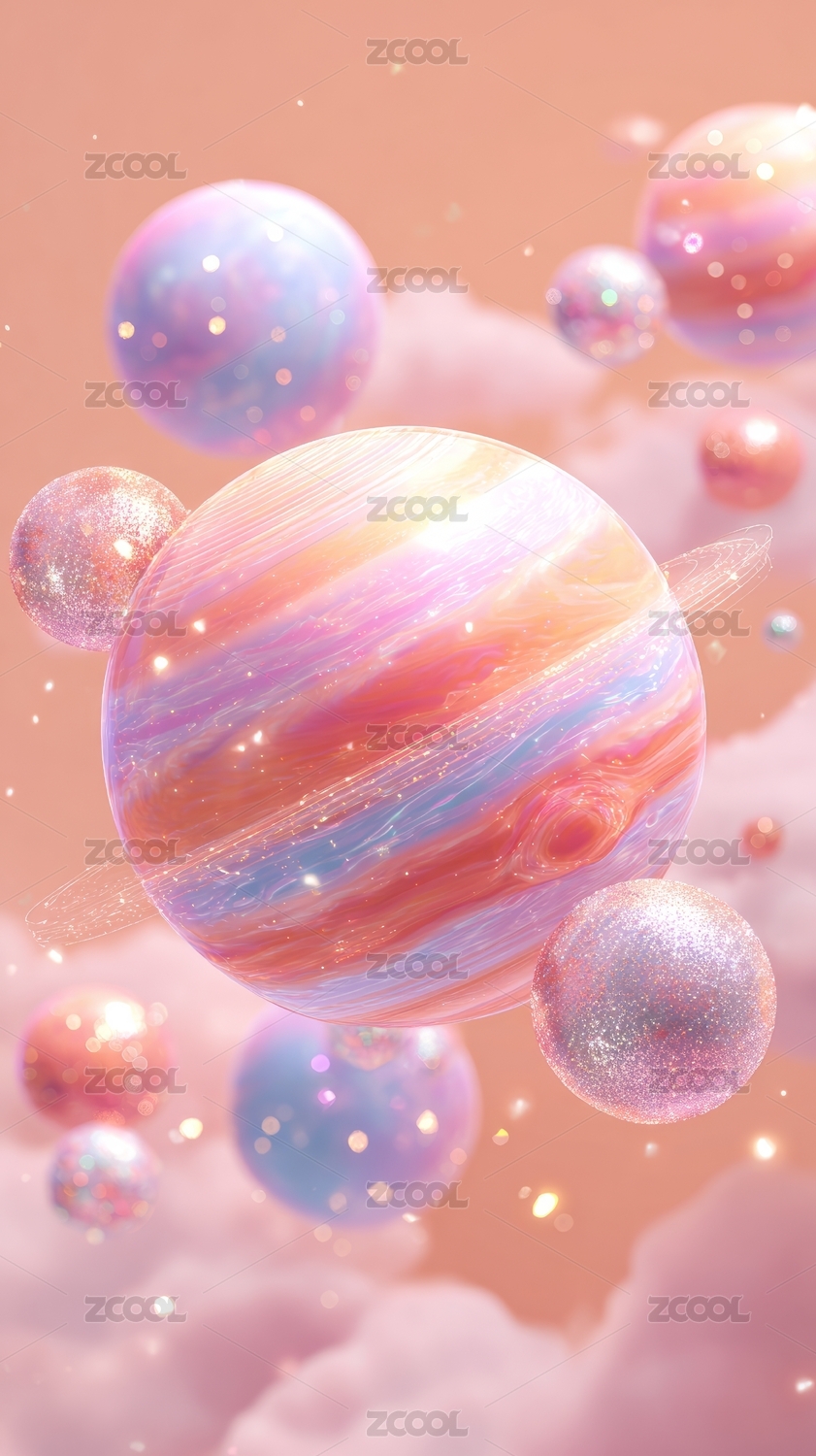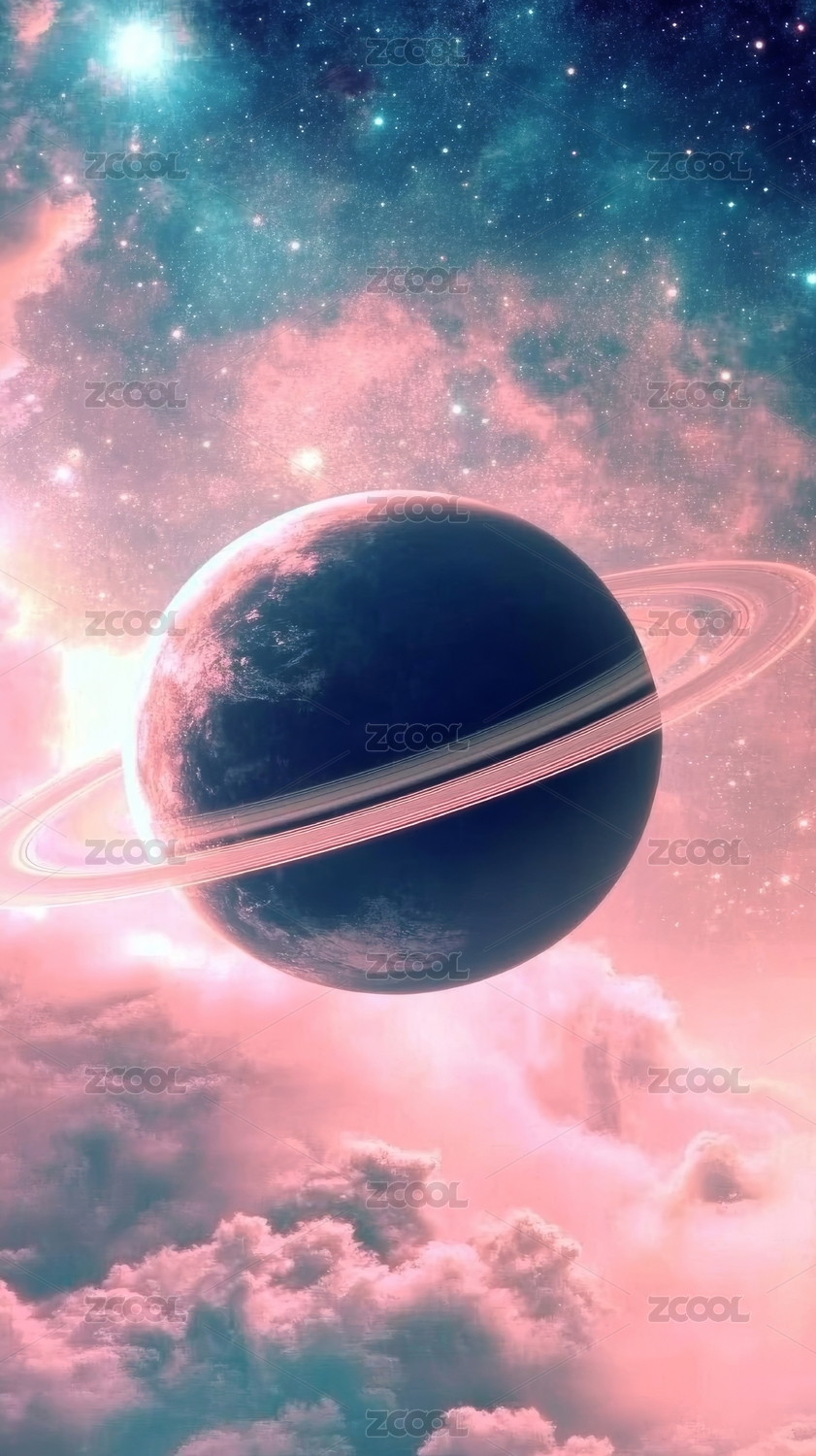 星球,宇宙,梦幻,粉色,唯美,浪漫,太空,星云,行星环,水彩