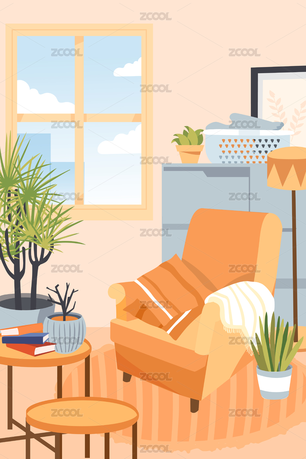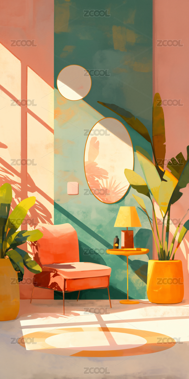 扁平风,自然,室内,装饰,轻松,治愈,几何,拱门,楼梯,球体