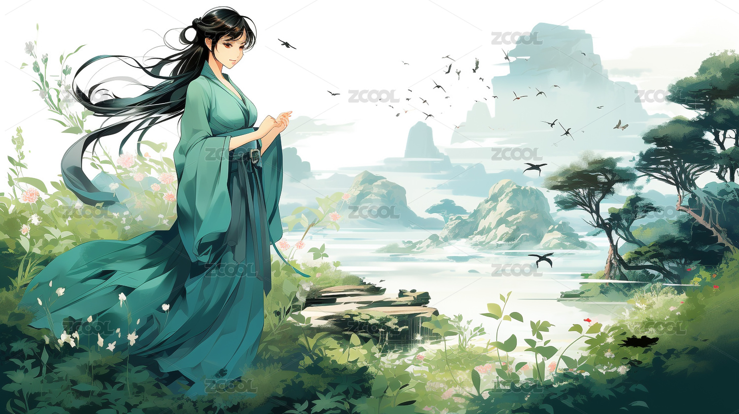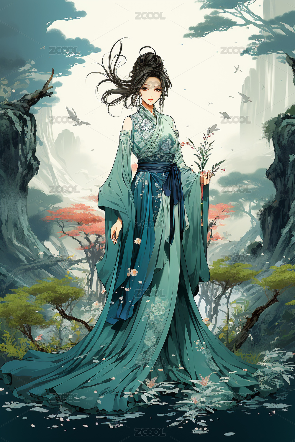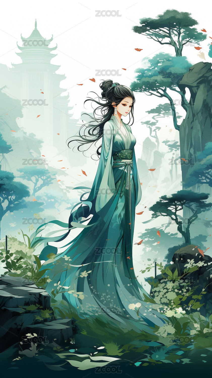 仙女,女侠,绿裙,绿衣服,古代,古装,国风,汉服,美女,女孩