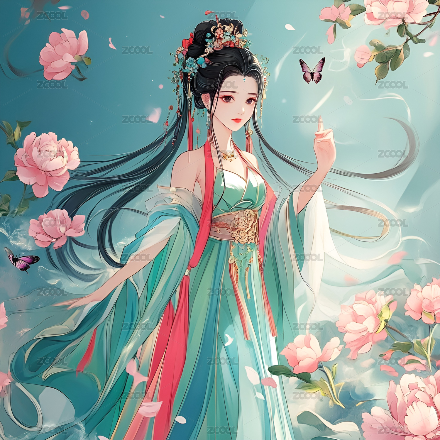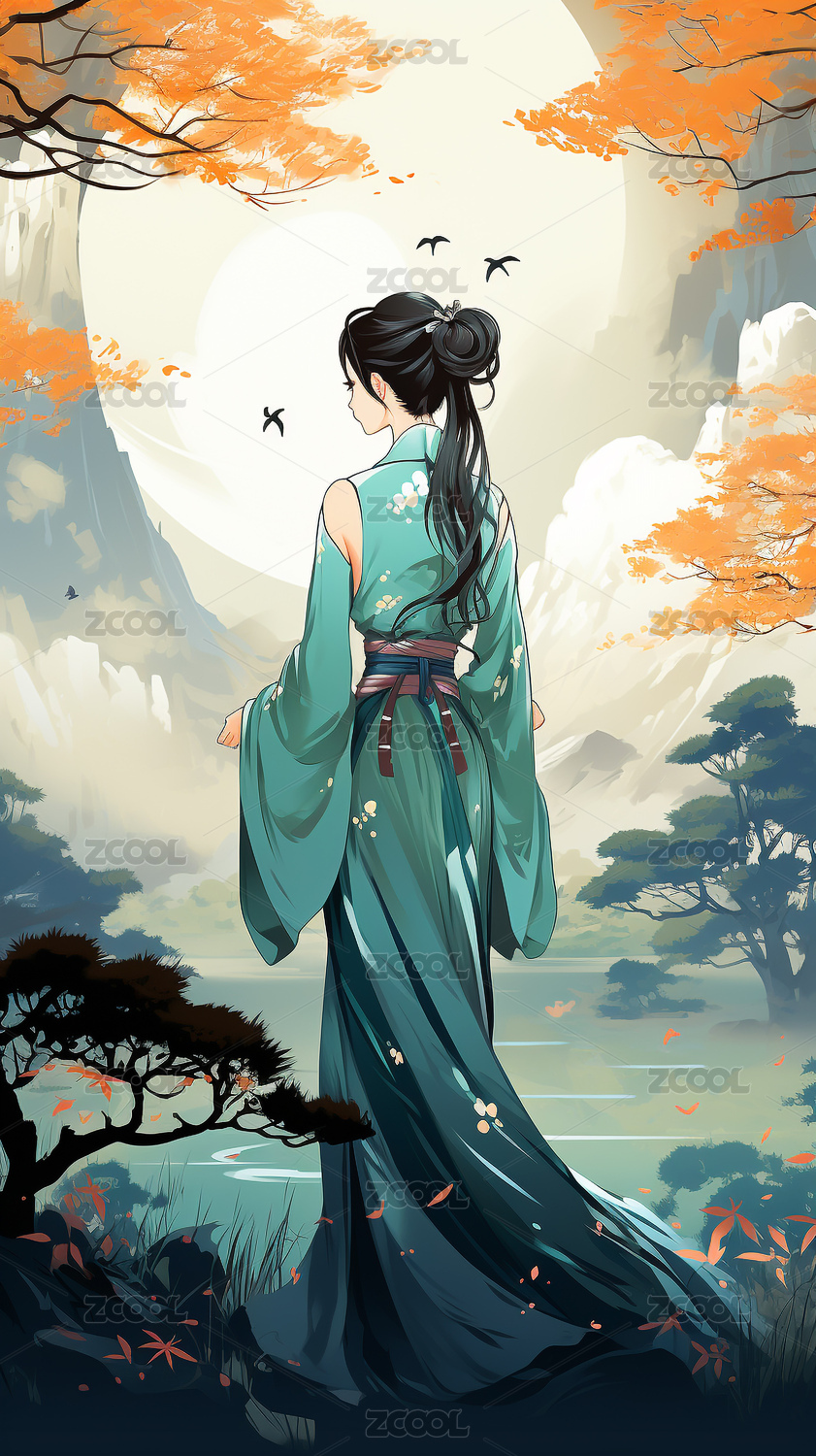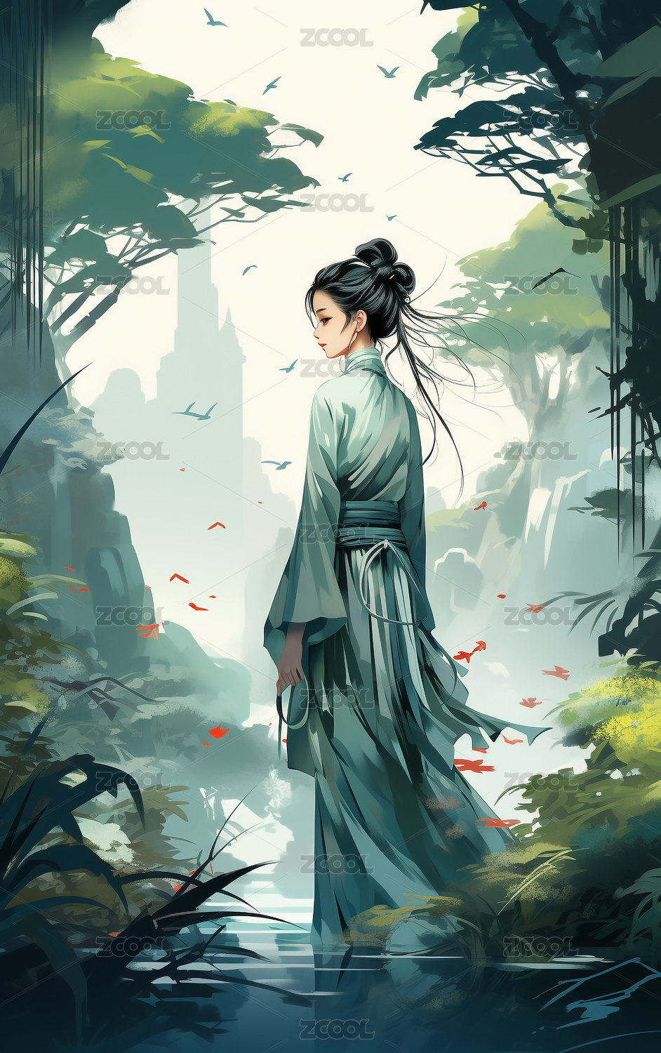 仙女,女侠,绿裙,绿衣服,古代,古装,国风,汉服,美女,女孩