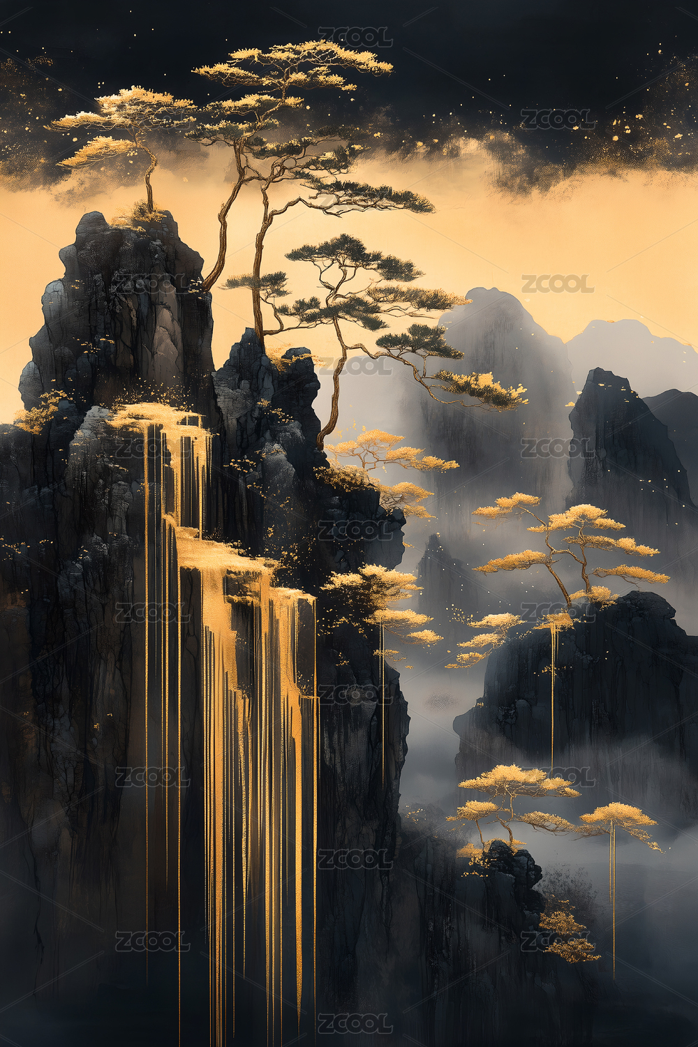 中国风暗黑风格山水画