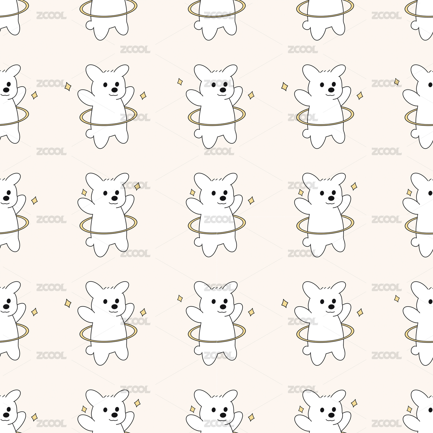 儿童可爱卡通小熊无缝四方连续背后印花